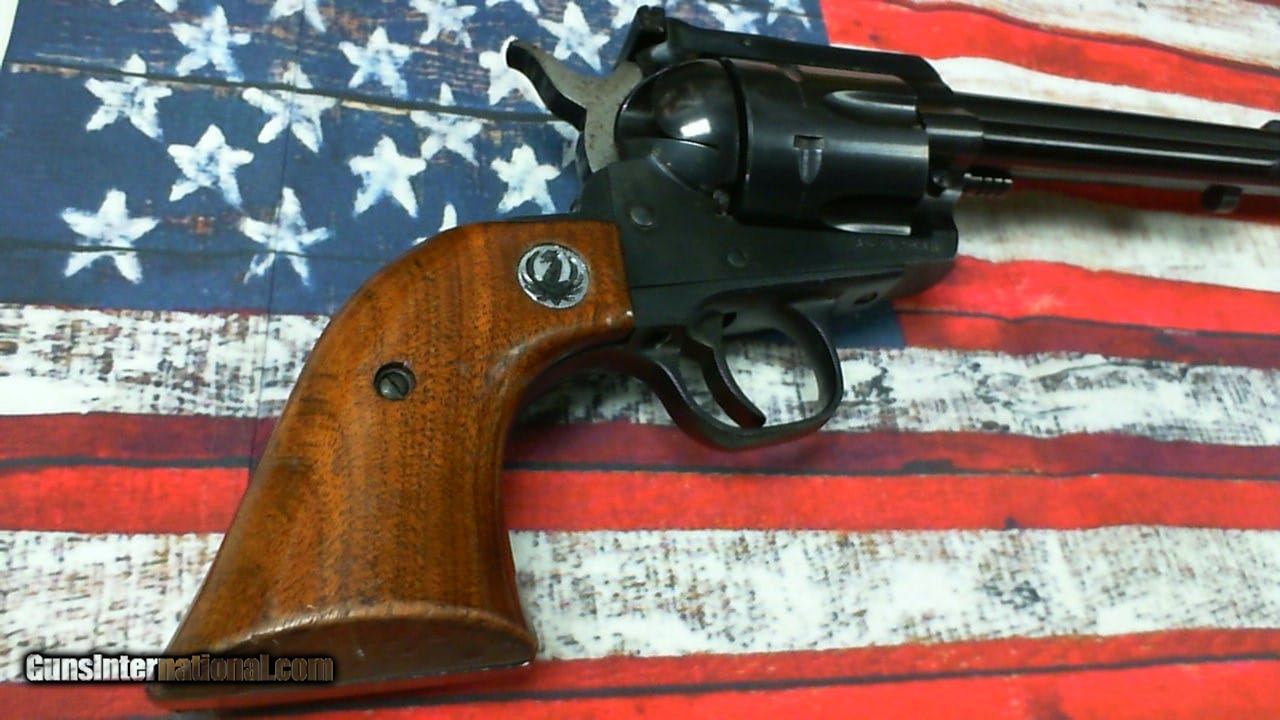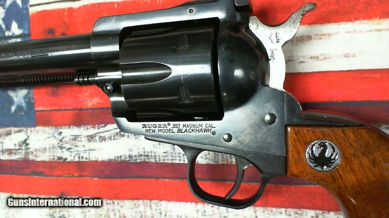 Description: Guns Listing ID: 535635 This 1980 Ruger New Model Blackhawk is in very good overall condition showing only a light drag ring on cylinder and wear on the bottom of grip butt. Very nice little revolver! Hand: Right Model Number: RUGER NEW MODEL BLACKHAWK Round Capacity: 6 Action: Revolver Barrel Length: 6.5\"\" Wood Condition: Good Triggers: Factory Sights: Scope Serrated Ramp Front - Adjustable Square Notch Rear Metal Condition: Very good Butt Pad: Uncheckered Walnut Grips SOLD Manufacturer: RUGER Model: NEW MODEL BLACKHAWK Caliber Info: 357 MAG Condition: Used - Non-Certified Barrels: 6.5 BARREL Finish: BLUE |