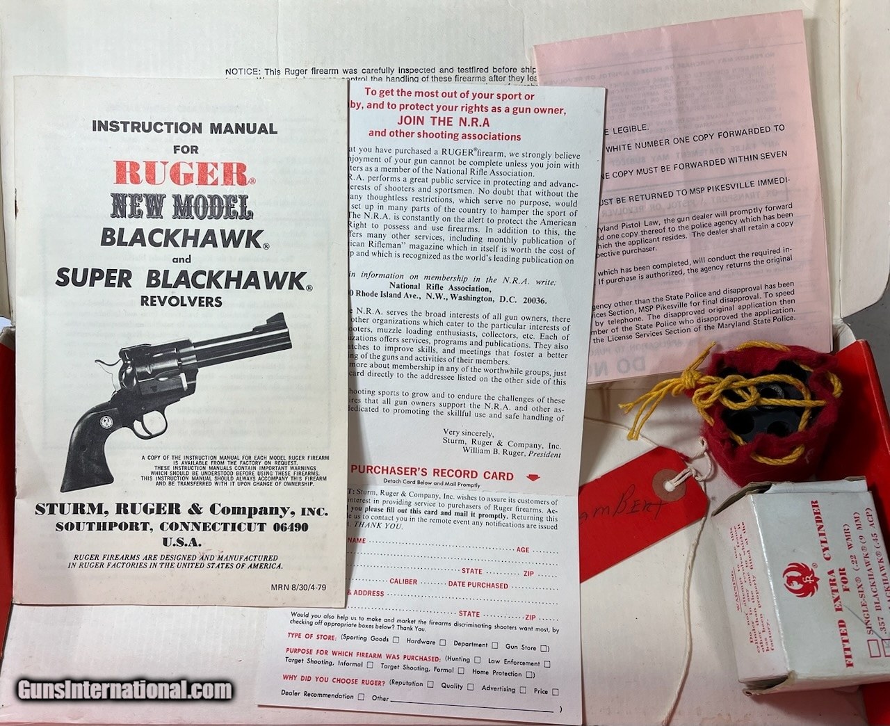 Description: Guns Listing ID: 751005 Ruger New Model Blackhawk .357mag/.9mm SN:34-86938 . This comes in the original box, with a .9mm cylinder, original paper work and original bill of sale. SOLD Manufacturer: RUGER Model: NEW MODEL BLACKHAWK Caliber Info: .357 MAG/9MM Condition: Used - Non-Certified Barrels: 6.5 BARREL Finish: BLUE |