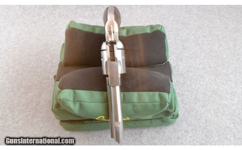 Description: Beautiful stainless firearm with very nice wood grips. Unfired. .357 Magnum SOLD Chambers: Six shot cylinder. Metal Condition: Excellent. Wood Condition: Excellent. Barrels: 4.5 inches. Triggers: Standard. Sights: Notch rear and blade front. Item Location: Lone Tree, CO |