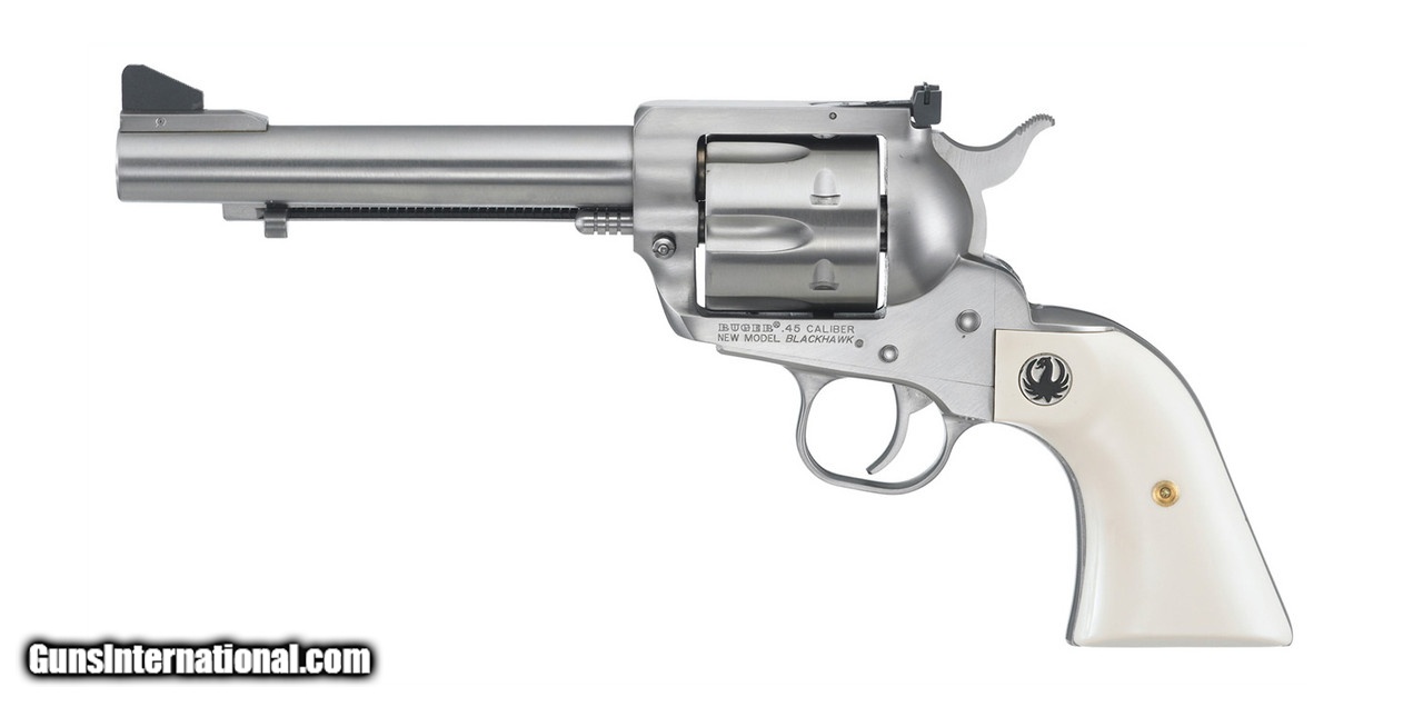 Description: Manufacturer: Ruger Model: New Model Blackhawk Convertible Sku: 5241 Caliber: .45 Colt / .45 ACP Capacity: 6 Rounds Barrel Length: 5.5" Stainless Steel Sights: Front - Ramp, Rear - Adjustable Overall Length: 10.5" Weight: 40 oz Grips: Simulated Ivory Twist: 1:16" RH Grooves: 6 All items are factory new in box unless otherwise stated. Based on the information available to us, the above specifications describe this item to the best of our knowledge. For further information, please contact or visit the manufacturer's . SOLD |