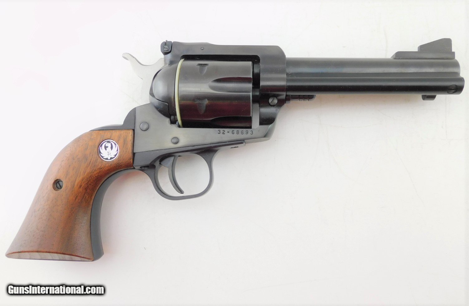 Description: Ruger NM BlackHawk SA .357 Mag, 4 5/8" full lug bbl, bright shiny bore, good rifling, adjustable square notch rear sight, serrated ramp front sight, blued finish, and very nice smooth grips with Ruger medallions inset. This is a very clean revolver! Add 3% for Credit Card Shipping $30.00 in the 48 contiguous United States SOLD |