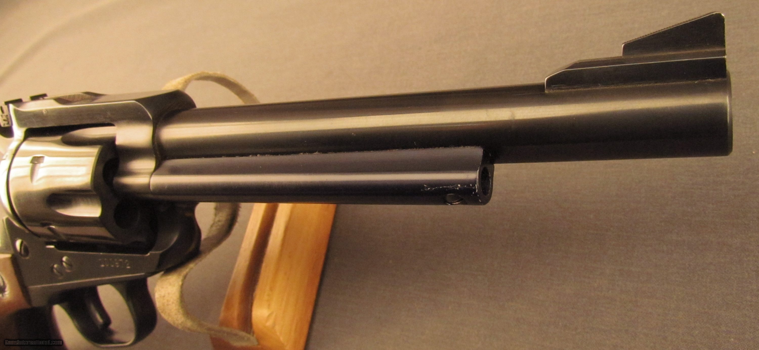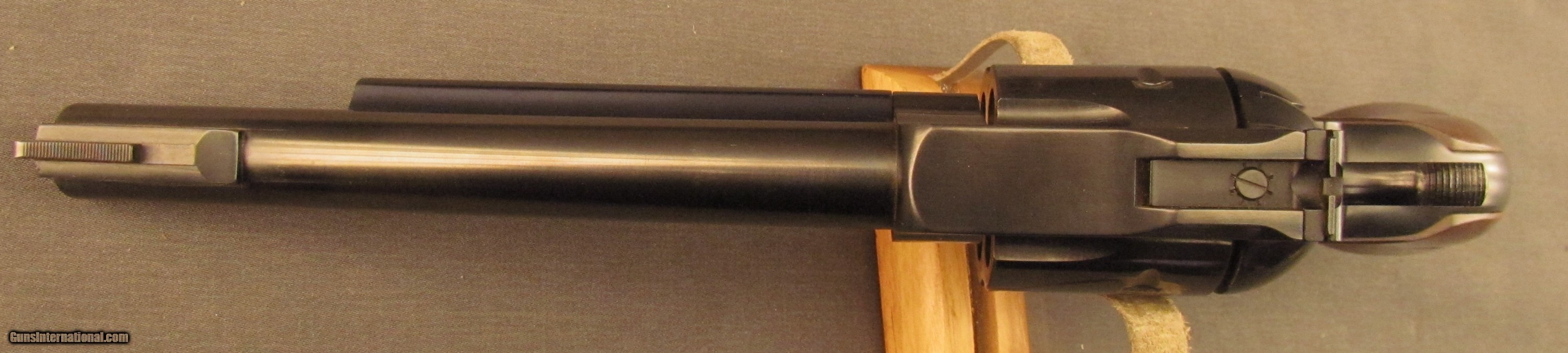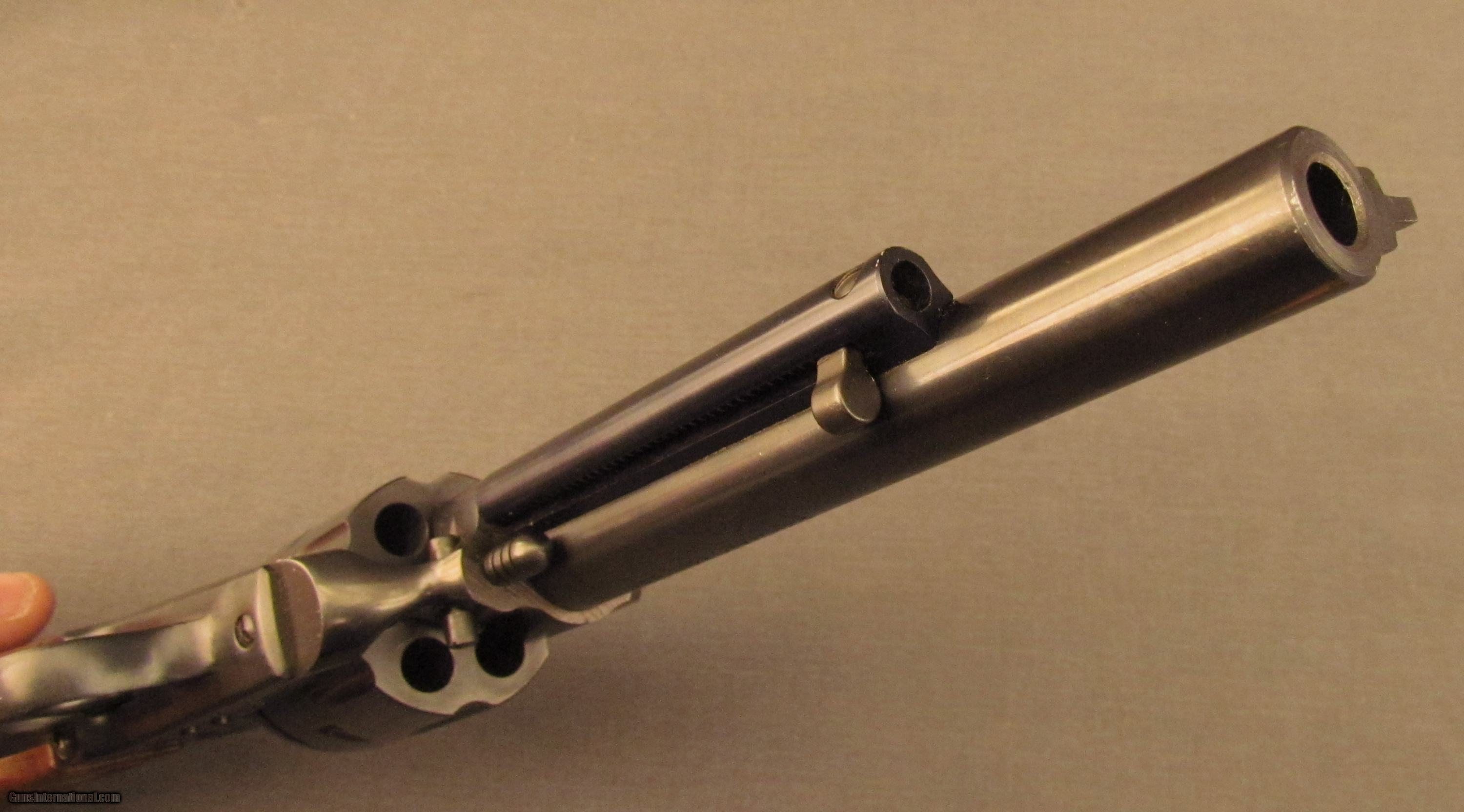 Description: S# 100972, 357 Magnum, 6 1/2 inch barrel, bright excellent bore. This 1968 manufactured revolver remains in it's original configuration without the transfer bar safety. Gun remains in excellent condition with over 96% blue showing a few bright spots on triggerguard, butt and . Grips have a couple small dings along bottom edges. Hammer sides remain bright with a few freckles of staining. Action works well and timing is correct. We recommend not carrying or using this gun with six rounds in cylinder, the chamber under the hammer should be empty at all times except when firing. FFL SOLD Manufacturer: Ruger Model: Blackhawk Serial Number: 100972 Caliber Info: .357 Mag Gauge Info: .357 Mag |