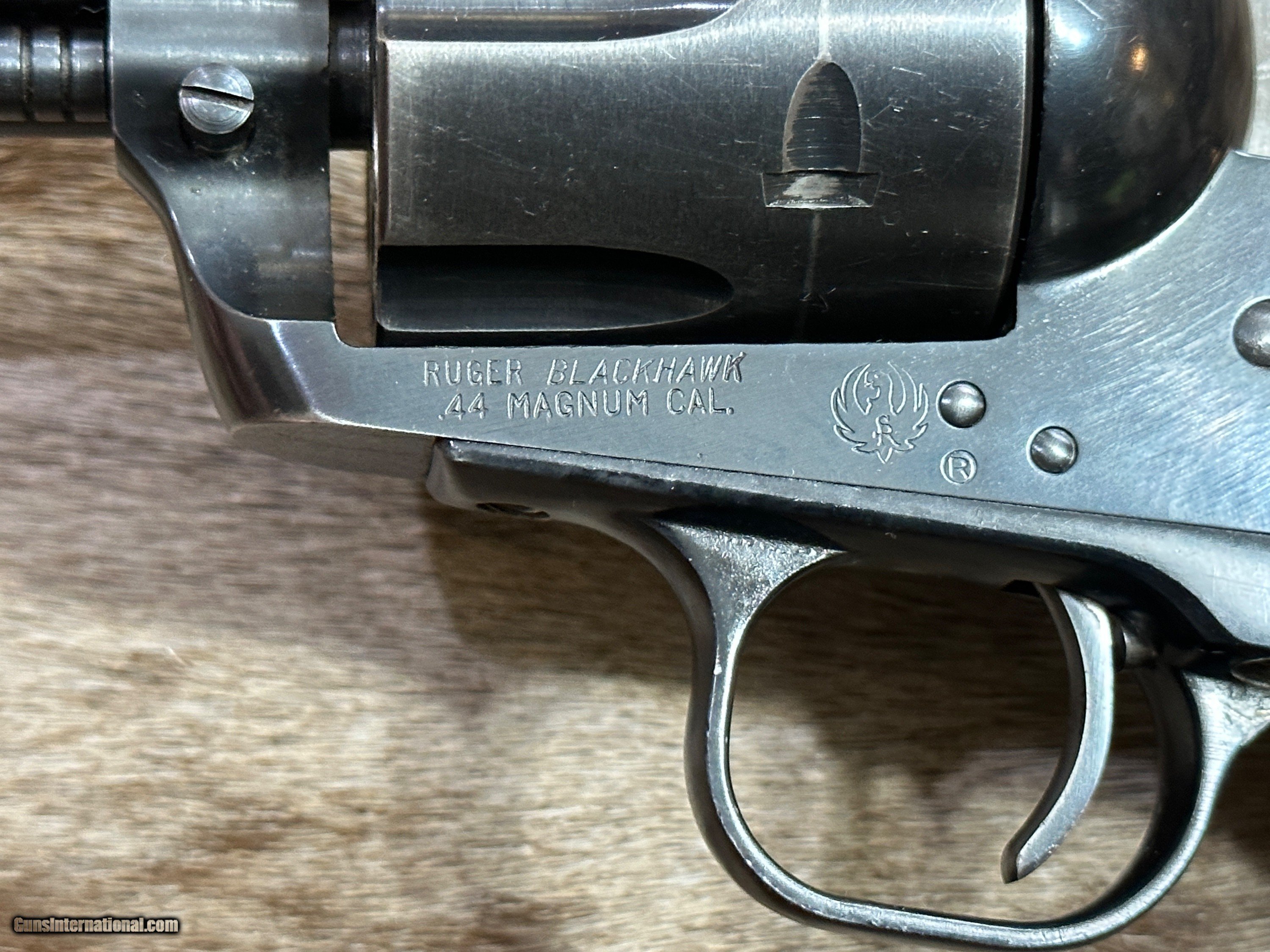 RUGER OLD MODEL BLACKHAWK 44 REM MAG, FLATTOP, 3-SCREW, NO TRANSFER BAR, 4-DIGIT S#, COMES WITH 2 BARRELS
