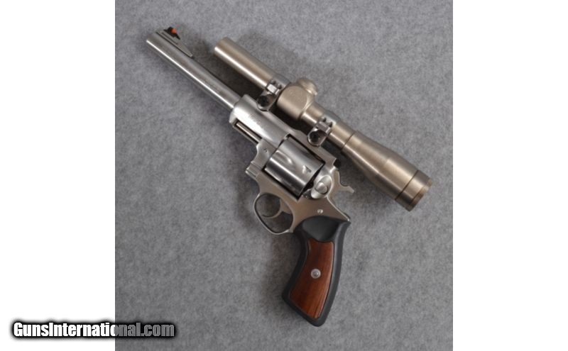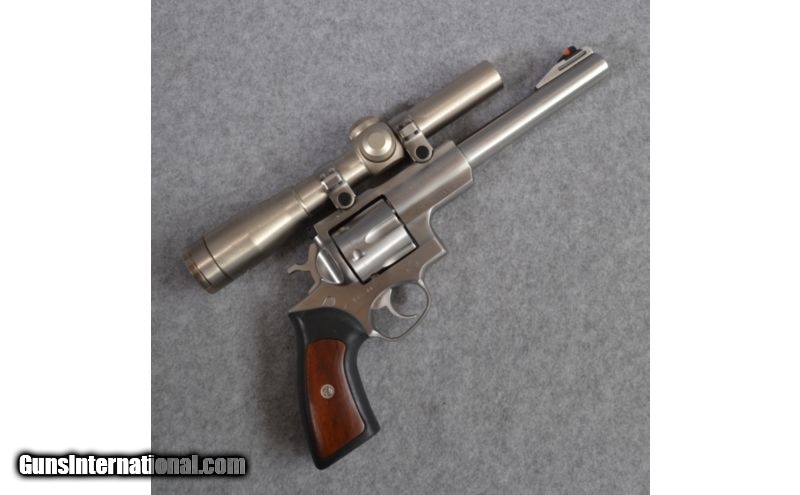 Description: SOLD Manufacturer: S/N 550-4453 Caliber Info: .44 Magnum Metal Condition: Stainless steel, very good condition with slight handling marks. Bore Condition: Very good, bright and shiney, good rifling. Barrels: 7 1/2 inches Weight: 4 Lbs 4 Oz Sights: Front blade with orange insert, fully adjustable rear sight. Extras: Six shot revolver, includes a stainless Redfield 2 1/2 scope. Item Location: Lone Tree, CO |