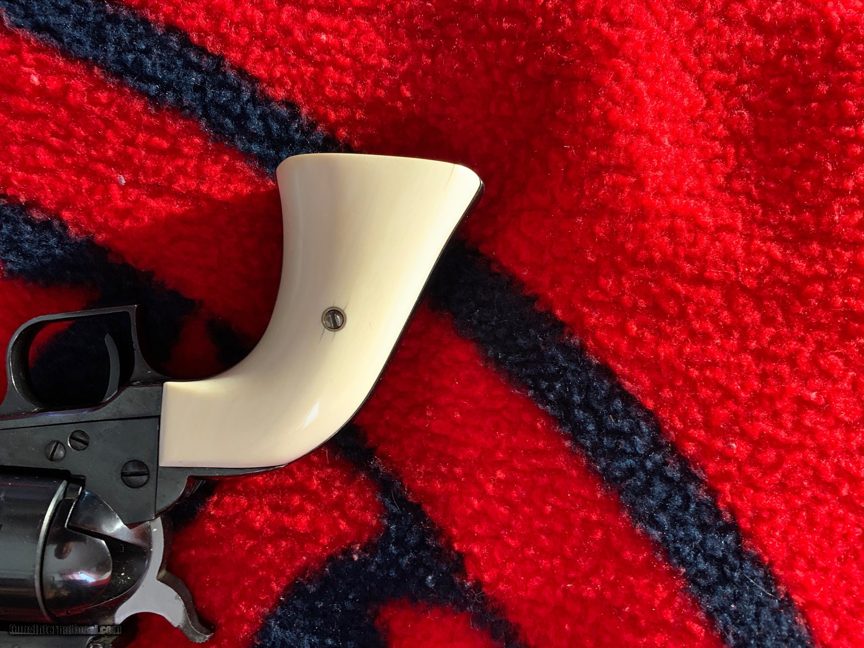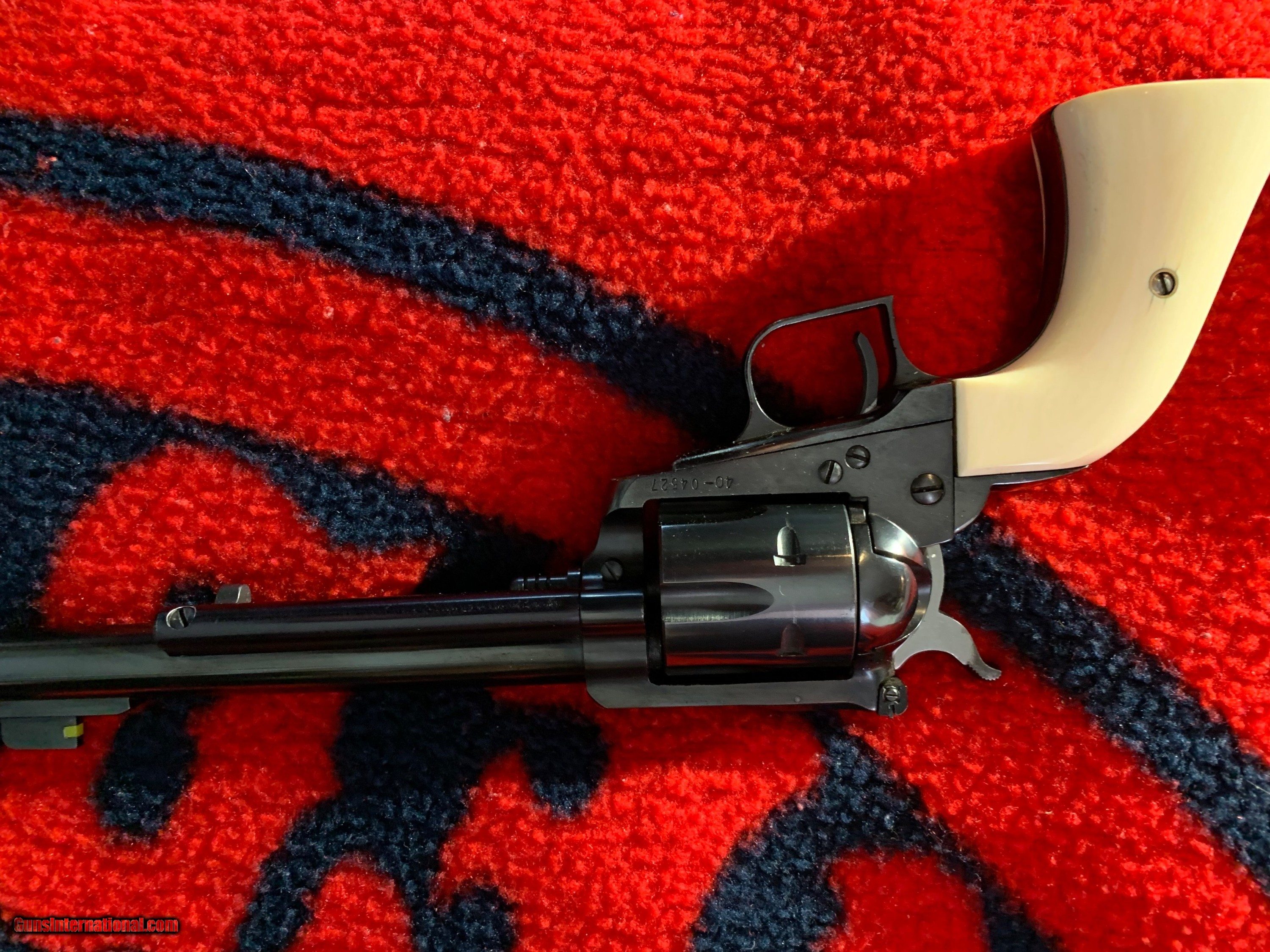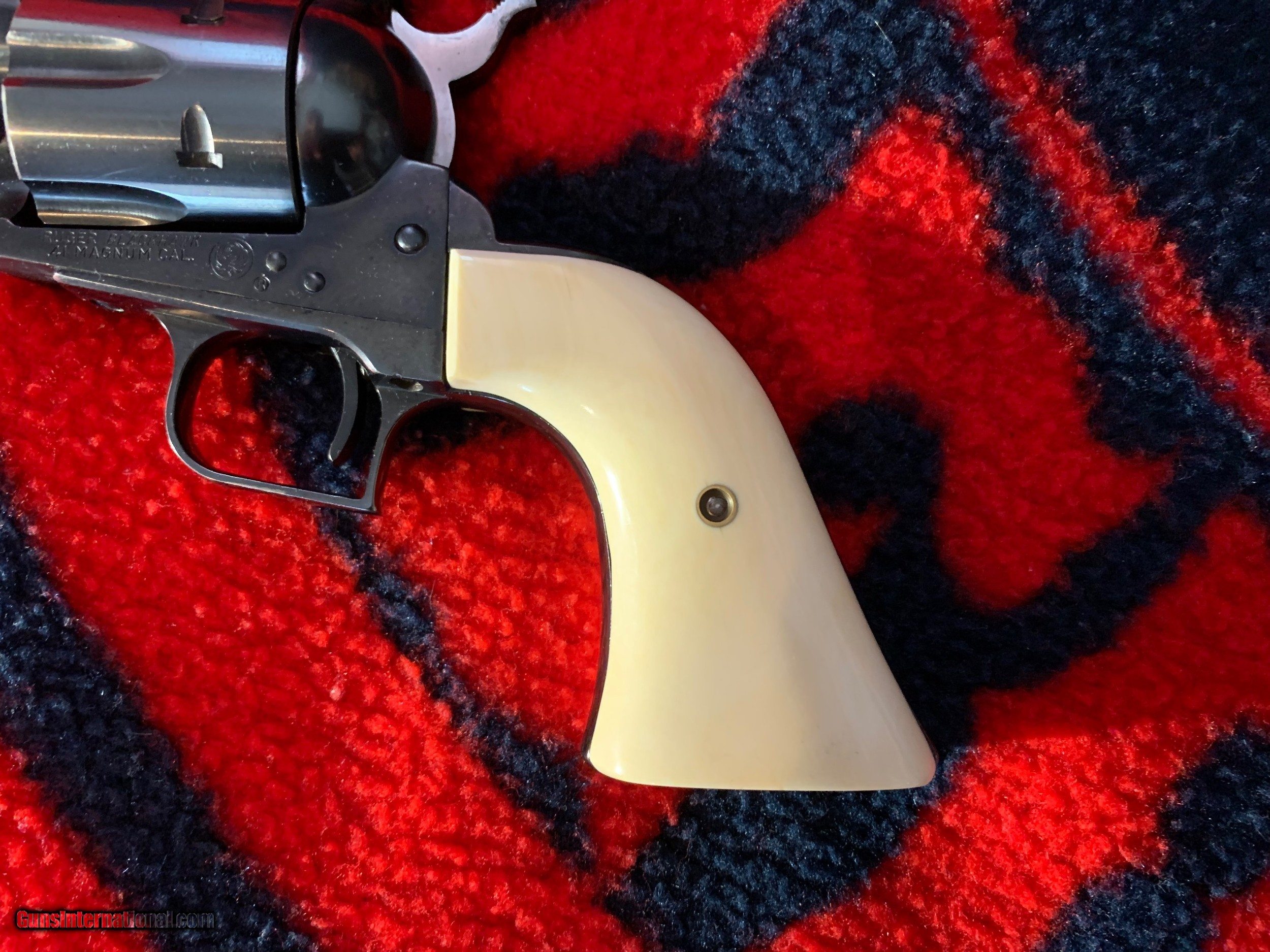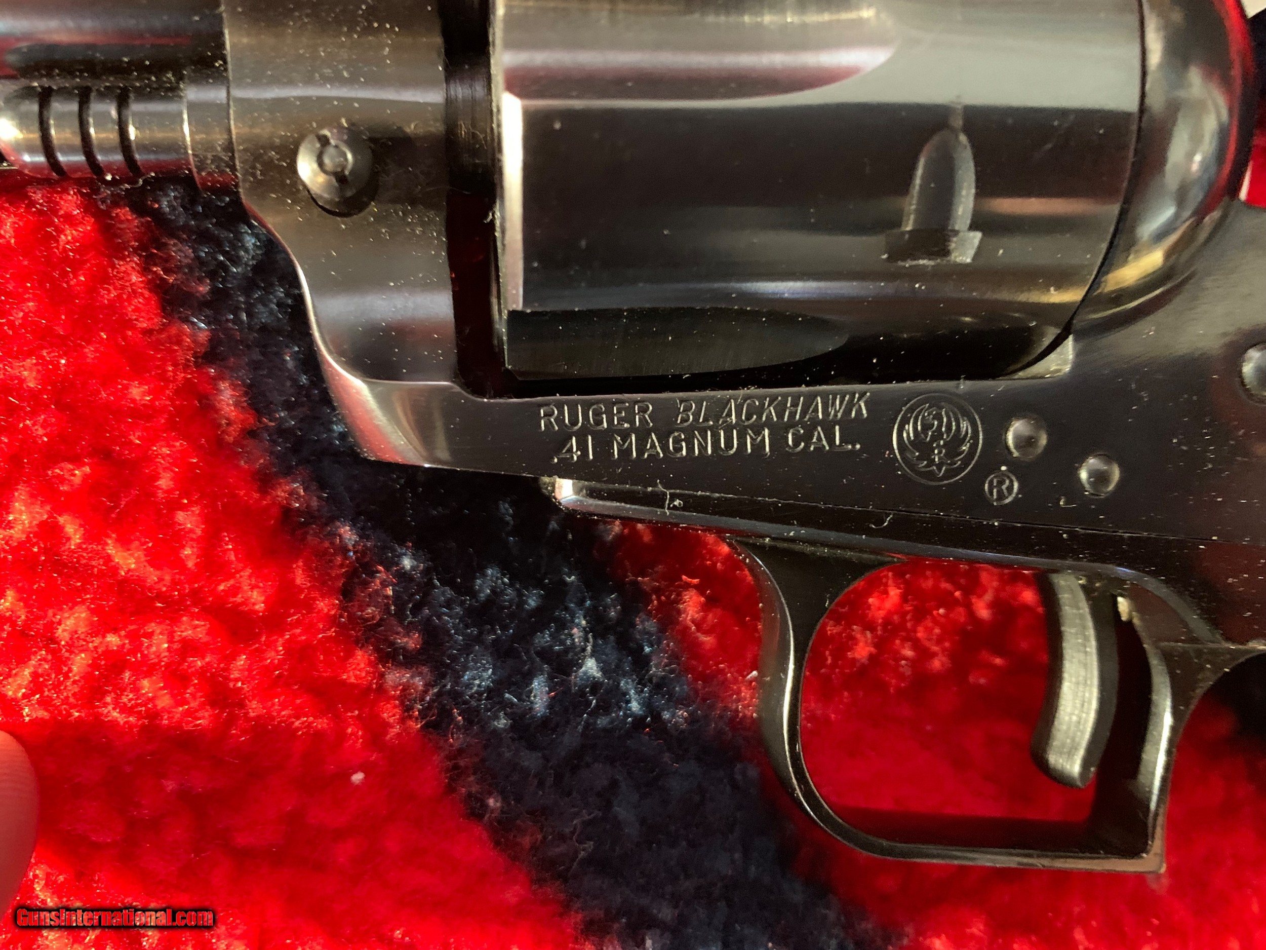 Description: Ruger Black Hawk in .41Cal. Three scew, in very good condition with Preban Ivory grips SOLD Handgun Caliber: .41 Remington Magnum Manufacturer: Ruger Model: Black Hawk Serial Number: 40-045xx Barrel Length: 6.5 Condition: 98 Metal Condition: 98 Wood Condition: 98 Bore Condition: 98 |