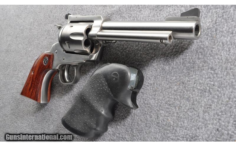 Description: Traditional western style revolver with modern safety transfer bar mechanism with loading gate interlock, coil springs for reliability. .44 Remington Magnum SOLD Chambers: Six round revolving cylinder, .44 Remington Magnum & .44 S&W Special Metal Condition: Very good, with slight drag mark on the cylinder Wood Condition: Grips are in near new condition Bore Condition: Sharp & bright Barrels: 5 1/2" Cold Hammer Forged Stainless Steel Triggers: Single Action Weight: 44 oz. Sights: Ramped blade front, Micro adjustable leaf rear Item Location: Grand Junction, CO |