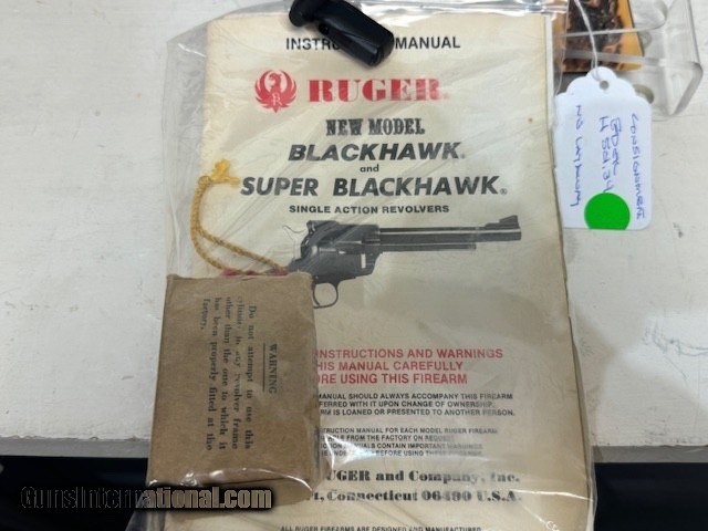 Description: Used Ruger Blackhawk 6 1/2" bbl 357 / 9mm both cylinders manual included good condition Buyer pays shipping Millers Gun Center Located in New Castle, Delaware "Home of TAX-Free shopping" No Credit Card Fees Send Gun international inquiry and then call 302-328-9747 to complete your purchase SOLD Serial Number: 104391 |