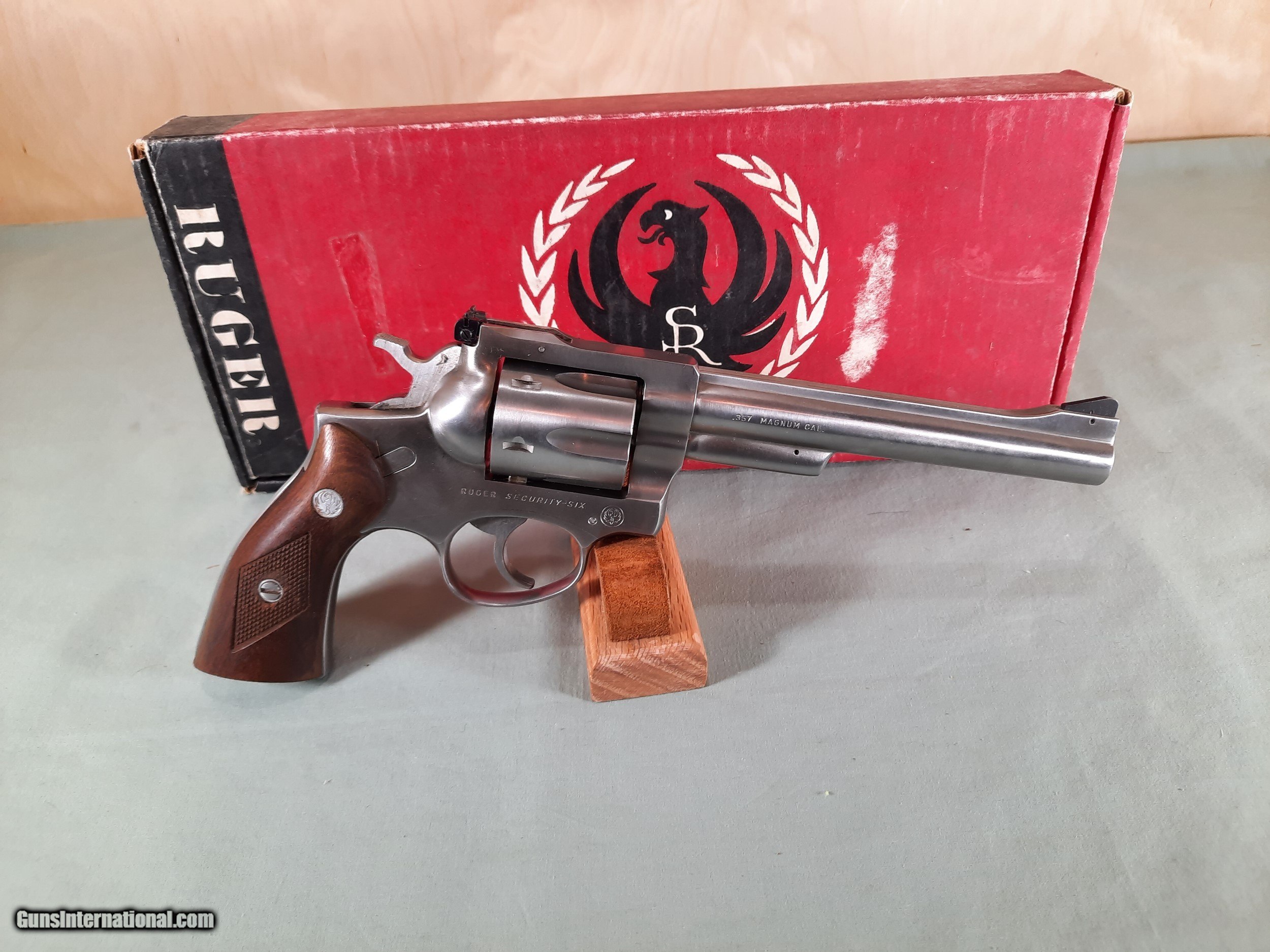 Description: SOLD SOLD SOLDRuger Stainless Security Six 357 Magnum. This revolver is in the early flip top black and red box with brochure. A very nice stainless gun in excellent condition. Serial Number 153 7471X. CIRCA 1978 NO CALIFORNIA SALES SOLD SOLD SOLD SOLD |