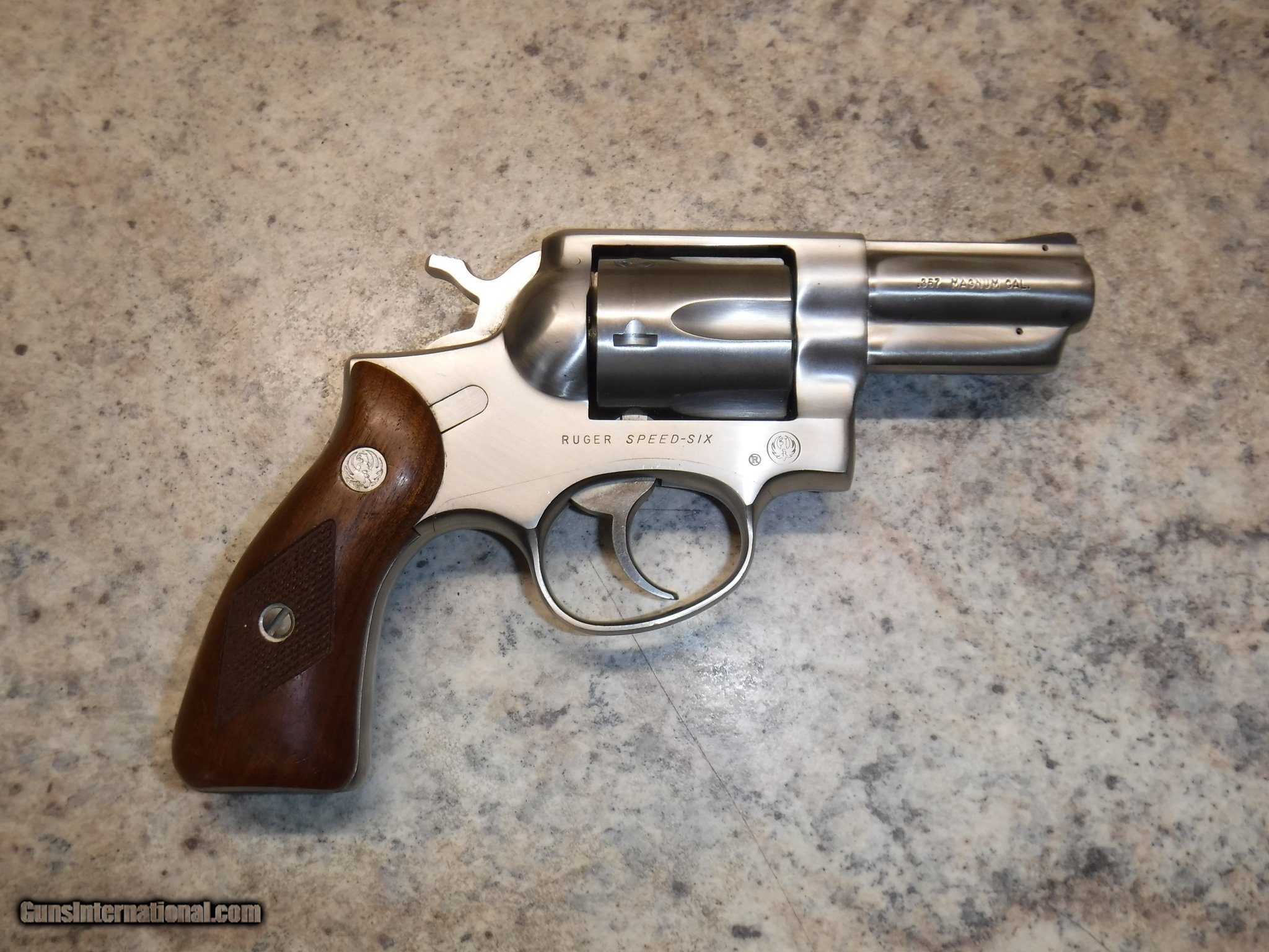 Description: Guns Listing ID: 1389219 This is for a very lightly used Ruger Speed-Six revolver in .357 Magnum caliber. 6 shot, Serial number is 157-44618. Walnut grips are the original to the gun, There is no box. The gun is perfect functionally. Bore is perfect. Timing is perfect, as is lockup. It is used, but in nearly like new condition. PLEASE take a look at the pictures. What you see is what you get. SOLD Manufacturer: RUGER Model: SPEED SIX 2.75 Caliber Info: .357 MAG Condition: Used - Non-Certified Barrels: 2.75 BARREL Finish: STAINLESS/WOOD GRIPS |
