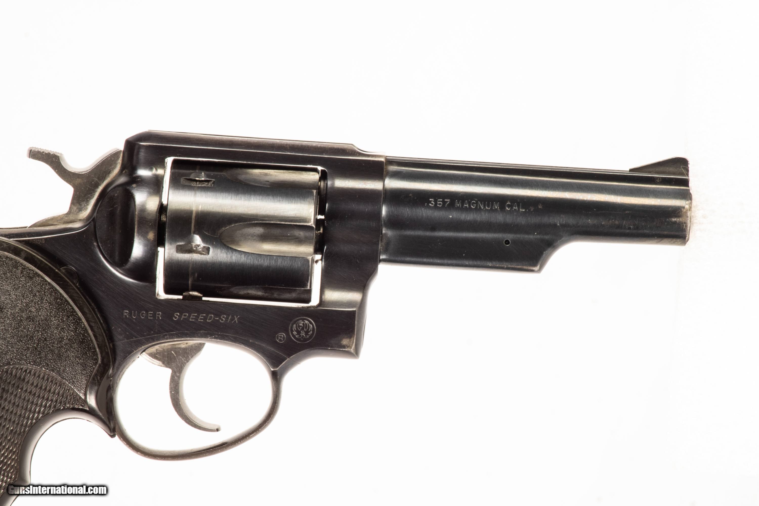 Description: Ruger Speed Six chambered in 357 Magnum with a 4 inch barrel and bright & shiny bore. This is a used firearm that is in good condition and is covered by Dury's Lifetime Warranty.