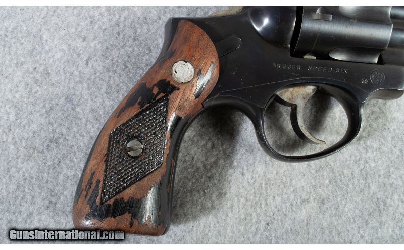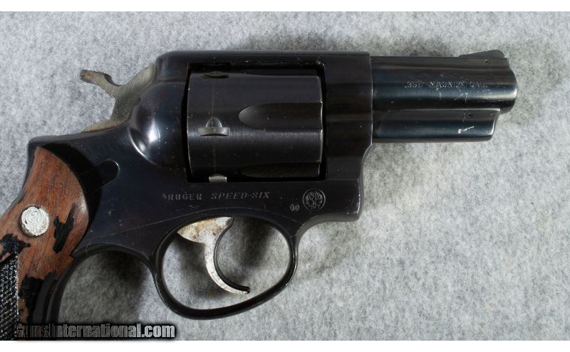 Description: Ruger Speed Six in good condition. Blued with wood stocks that have a coating or paint peeling. .357 Mag./.38 Special SOLD Chambers: 357 Magnum Metal Condition: Good Wood Condition: Good Bore Condition: Bright Barrels: 2.5 inch Triggers: Single Action / Double Action Sights: Fixed Item Location: short pump |