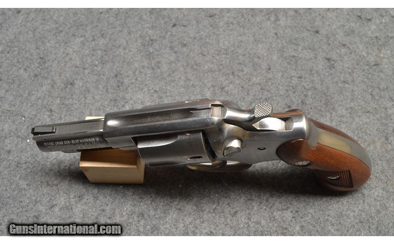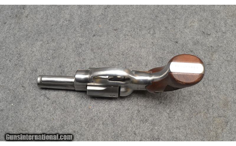 Description: This revolver is a Ruger Speed-Six chambered in 9MM. It has a stainless finish, checkered grips, and ramp front sight. This firearm is in good condition overall, with signs of light use and wear. It comes with the original factory box, papers, and half moon clips. 9mm Parabellum SOLD Metal Condition: "Good, a few light handling and use marks and small wear spots Wood Condition: "Good, some small scratches Bore Condition: Bright and shiny with crisp rifling Barrels: 2 3/4" Stainless steel Fore End: Checkered wooden grips with silver Ruger Medallion Weight: 2LBS Sights: Ramp front sight Item Location: Wichita, KS |
