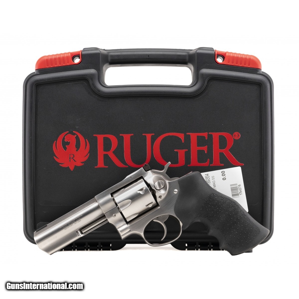 Description: " GP100 standard double-action revolver with 4.2"" barrel, satin stainless finish, with Hogue grips, adjustable rear & ramp front sight, 6rd. new. UPC:736676017058 SOLD |