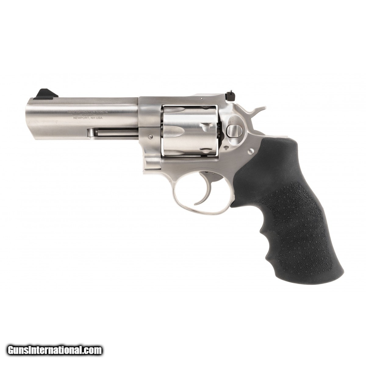 Description: " GP100 standard double-action revolver with 4.2"" barrel, satin stainless finish, with Hogue grips, adjustable rear & ramp front sight, 6rd. new. UPC:736676017058 SOLD |