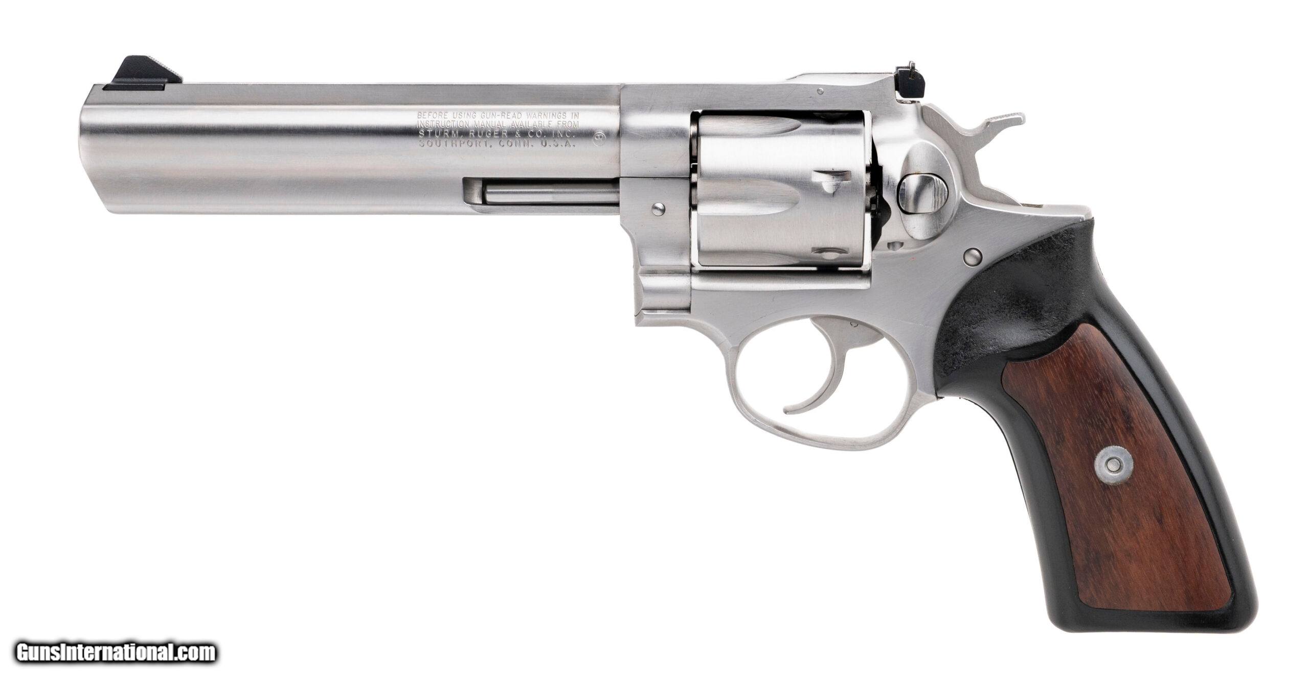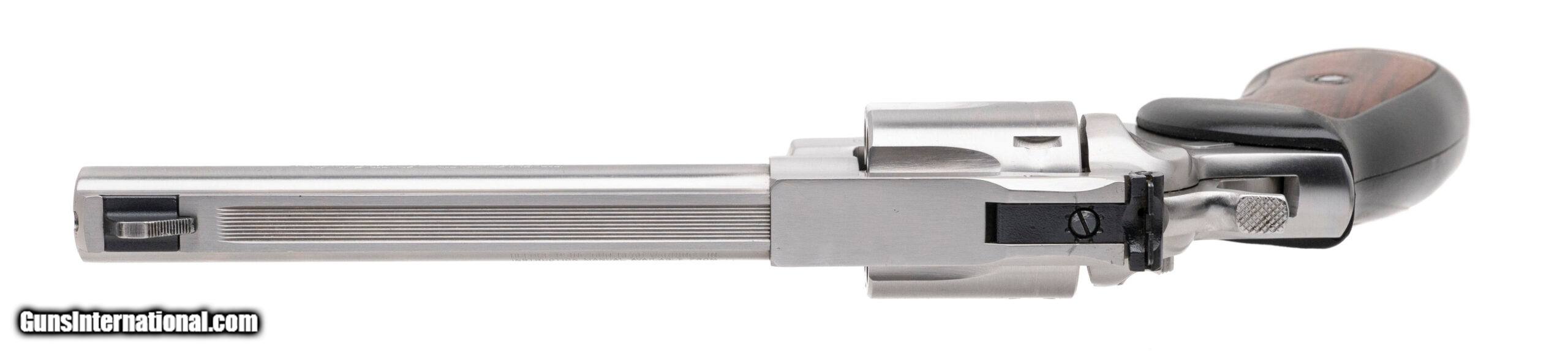 Description: "SN: 170-85775 modern production stainless steel double action 357 magnum revolver with a 6"" barrel, target sights with adjustable rear sight, fluted 6 shot cylinder and rubber grips with wood inserts. Some light scuffs and handling marks but overall in very good condition with an excellent bore. Comes with period case not numbered to the gun. Price: $749.95 Contact Seller |