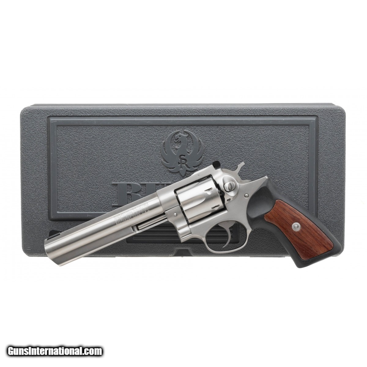 SN: 175-09574. Modern Production. .357 Magnum with a 6"" barrel. Bore is excellent. Stainless steel revolver with adjustable rear sight, and rubber grips with wood inserts. Overall condition is excellent with case.