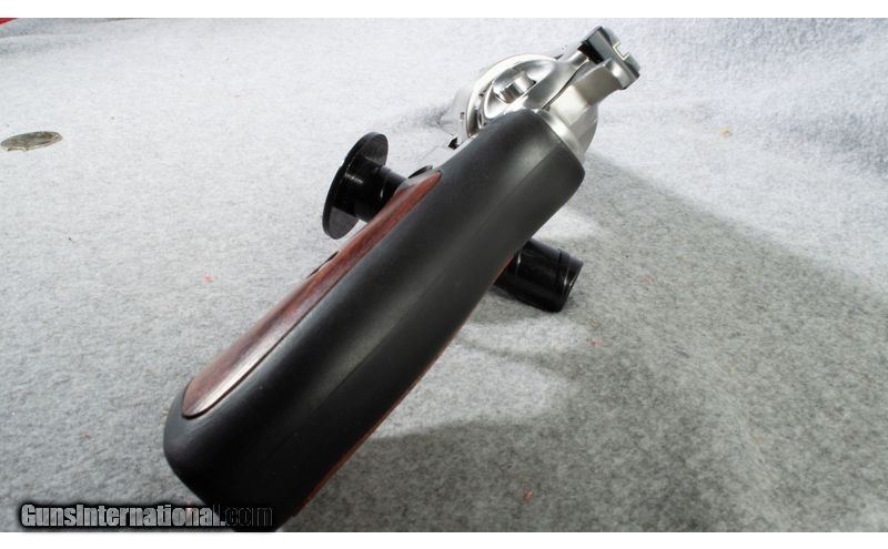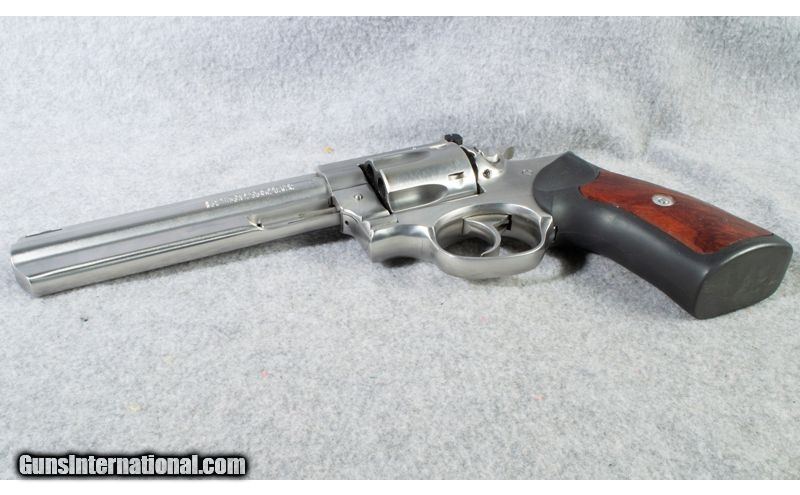 Description: Ruger GP100 in stainless with 6 inch barrel. Rubber grips with wood inserts .357 Mag SOLD Chambers: 357 Magnum Metal Condition: Very Good Wood Condition: Very Good Bore Condition: Bright Barrels: 6 inch Triggers: Single Action / Double Action Sights: Factory Adjustable Item Location: short pump |
