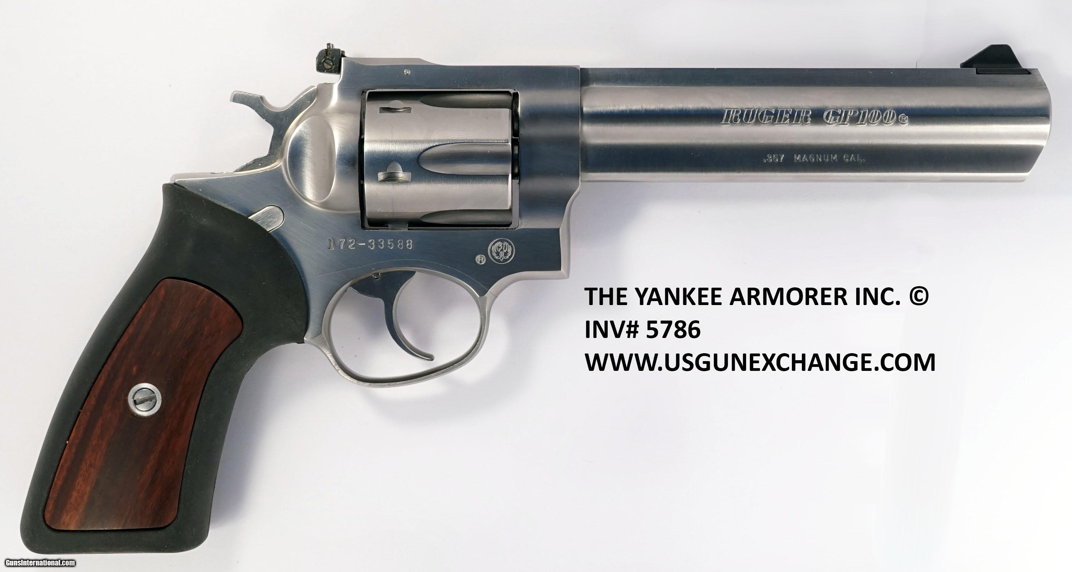 Description: Inv. 5786 Ruger GP 100, Cal. .357 Mag. 6" barrel. Ser. 172-335XX. The gun appears to be unfired or as close to it as you can get. It does not show use anywhere. It is the early model with the wood panel rubber grips. Complete with the original factory box and literature. A beautiful brute of a revolver in super condition for only........$525. To purchase this firearm or if you want to request more information contact us at: Email ckgunsymail Phone 201-512-0002 Cell 201-575-6838 FAX 201-215-4759 We accept most major credit cards. Prices shown are Discounted 3% for Cash or Check. The buyer must be familiar with all the laws governing the purchase and the ownership of firearms in their own city and state. The Yankee Armorer, Inc is not responsible for any failure to comply with or observe these laws. The Yankee Armorer, Inc will only ship after full payment and receipt of all required documents. Shipping: Add $35.00 for handguns, $45.00 for long guns. New Jersey buyers are subject to a 7% sales tax. The Yankee Armorer, Inc offers a 3 day inspection period with full refund upon return of intact firearm and in the original condition. The Yankee Armorer, Inc offers a no interest lay away program - 25% down; 25% in 30 days; 25% in 60 days; and full payment in 90 days. Any violation of this policy is subject to restocking and forfeiture of all payments. Any variation from this policy must be agreed to in advance. Unshipped Cancelled sales are subject to a 20% restocking fee. Be advised that all firearms sold by The Yankee Armorer, Inc. or the Gun Exchange, LLC (SELLER) are sold as collector’s items. They have not been fired or tested for safety and must be examined by a license gunsmith prior to use. By purchasing any item from the (SELLER), you are agreeing to hold the (SELLER) free from any damages or lawsuits of any nature. Any item left for transfer or storage will be charged to $25.00 per month, per item from the day of its receipt. Any variation from this policy must be agreed to in advance. Store hours 10:00 am to 5:00 pm Tuesday -Saturday. It's always best to call for appointment. Store 201-512-0002, cell 201-575-6838. SOLD Manufacturer: Ruger Model: GP 100 Serial Number: 172-335XX Caliber Info: .357 Magnum |