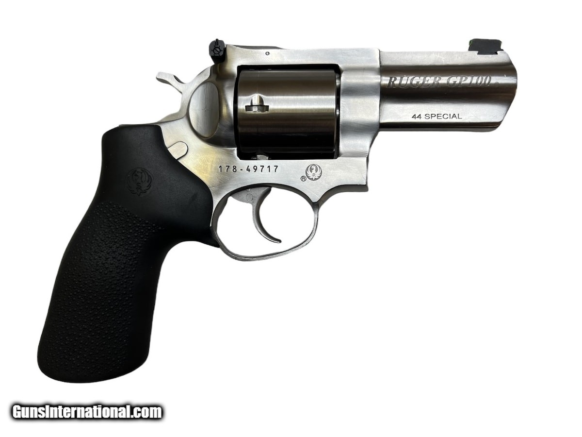 Description: Guns Listing ID: 560832 This Ruger GP100 is a rugged revolver known for its dependability and accuracy. It offers a smooth double-action trigger pull and a crisp break in single-action. The robust stainless steel construction provides corrosion resistance, and – with no side plate – this revolver can be broken down into several large subassemblies without any tools, making for easy maintenance. The patented transfer-bar mechanism aids in preventing accidental discharges and the triple-locking cylinder provides positive alignment round after round. This American-made revolver is equally well-suited for outdoor carry, home and self defense, and target shooting. Item# I01007450 CC-THL SOLD Manufacturer: RUGER Model: GP 100 Caliber Info: 44 CAL Condition: Used - Non-Certified Barrels: 3 BARREL Finish: STAINLESS |