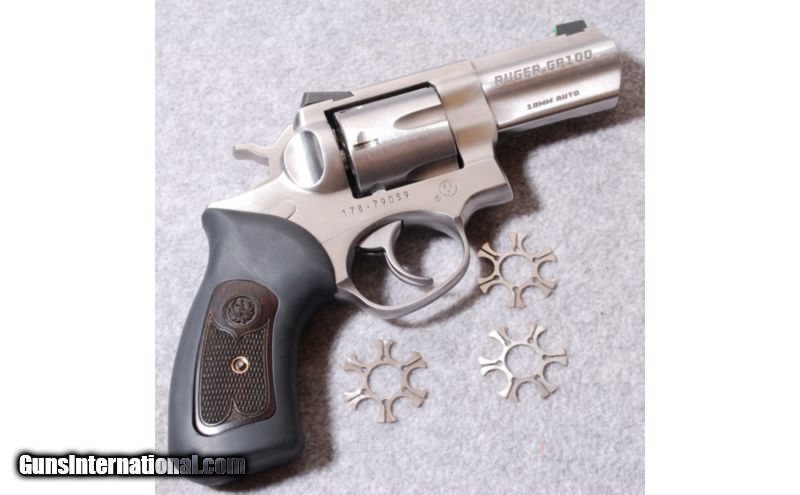 Description: Very clean GP100 in the increasingly popular 10mm auto, 3 moon clips included. SOLD Caliber Info: 10mm Auto Chambers: 6 Metal Condition: Very Good Bore Condition: Very Good Barrels: 3 Triggers: Factory Stock: Rubber Ruger pistol grips Weight: 1.75 Lbs Sights: Hi Viz front, U notch rear Extras: 3 moon clips Item Location: Rapid City, SD |