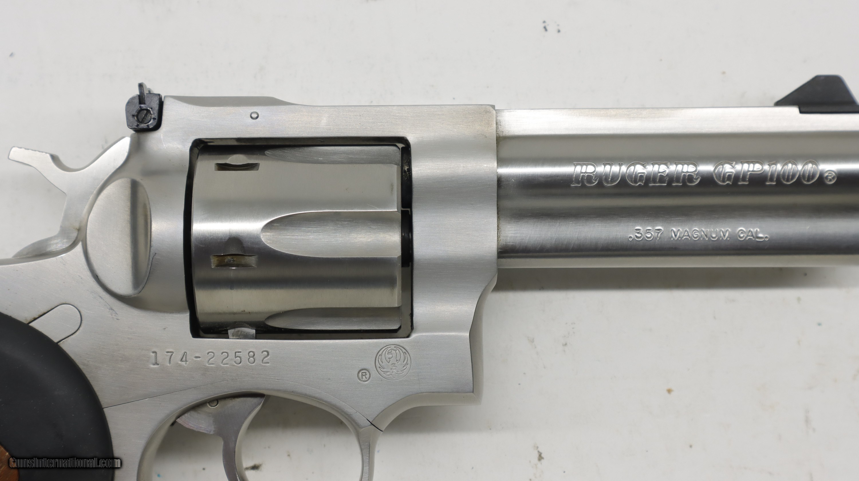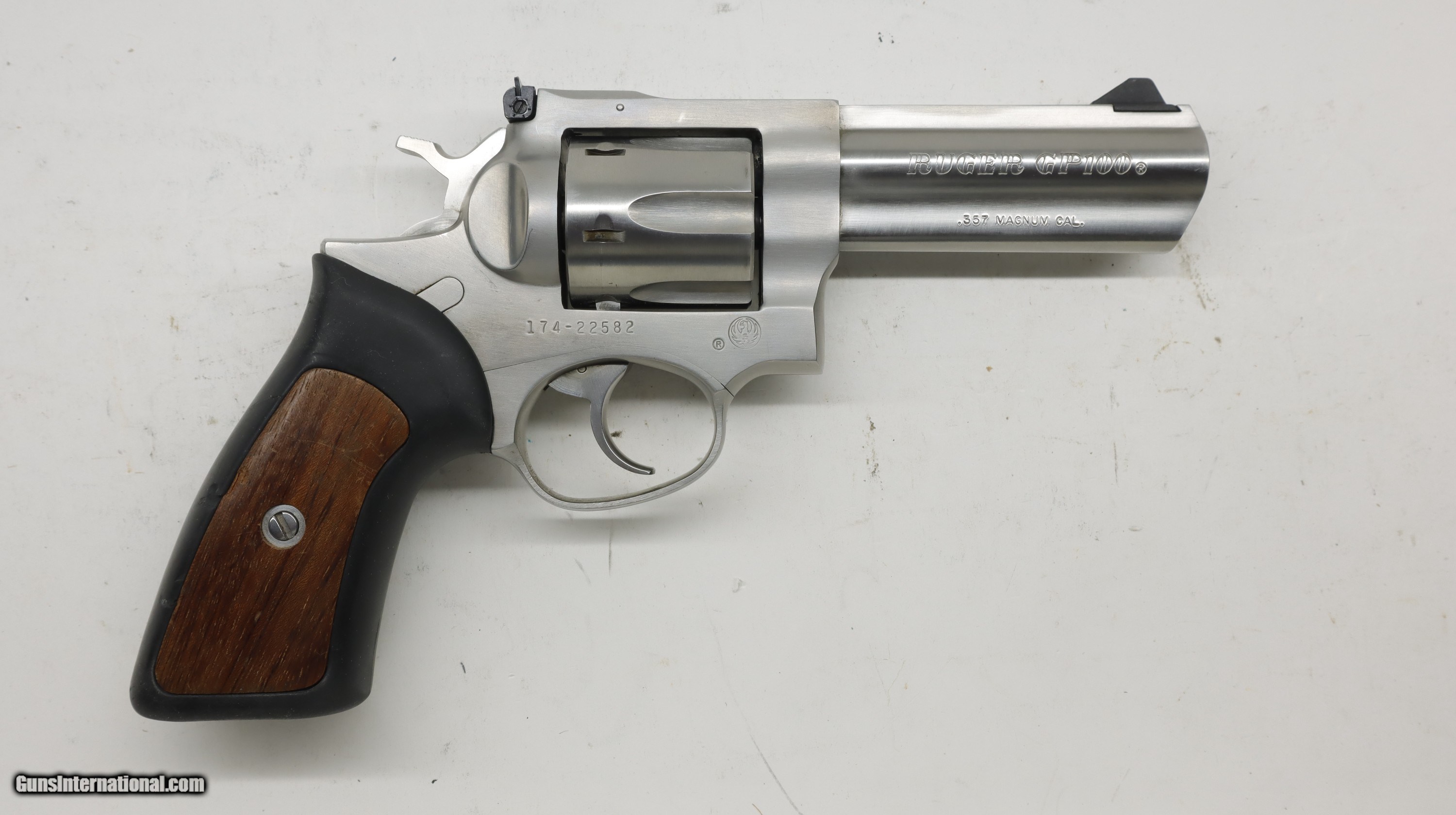 Ruger GP100 357 Mag, 4" Stainless Wood/Rubber Grips, 2000