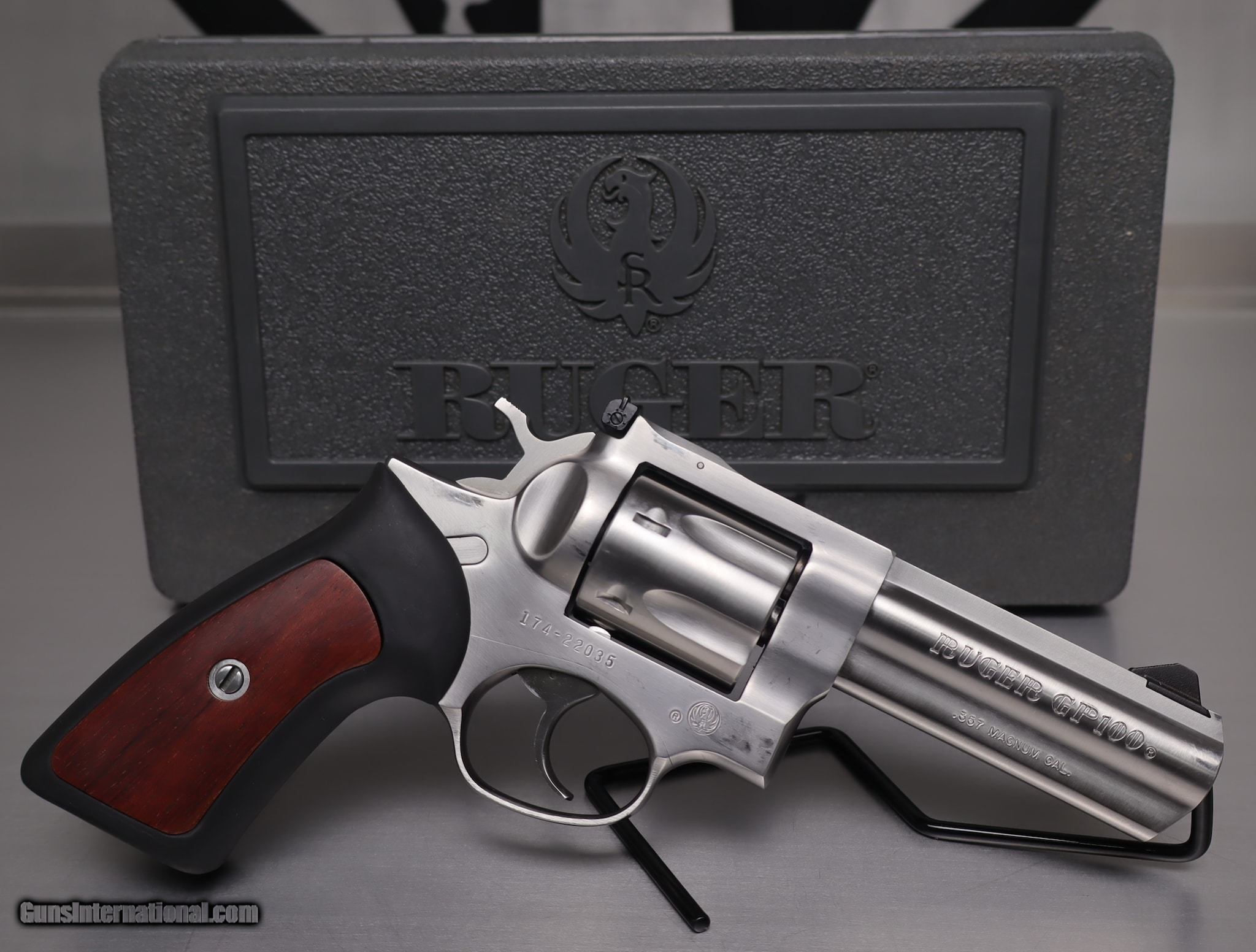 Description: Guns Listing ID: 1127575 Condition: Very Good Overall, Shiny Bore With Strong Rifling. The Barrel and Frame Have Wear and Finish Loss. Included: Factory Case & Owners Manual Product Description: The Ruger GP100 Double-Action Revolvers are among the most comfortable shooting revolvers. The triple-locking cylinder is locked into the frame at the front, rear and bottom for more positive alignment and dependable operation shot after shot. It‚‚s patented grip frame design easily accommodates a wide variety of custom grips and the patented transfer bar mechanism provides an unparalleled measure of security against accidental discharge. With no special tools required, maintenance and assembly is easy SOLD Manufacturer: RUGER Model: GP100 Caliber Info: .357 MAG Condition: Used - Non-Certified Barrels: 4.2 BARREL |