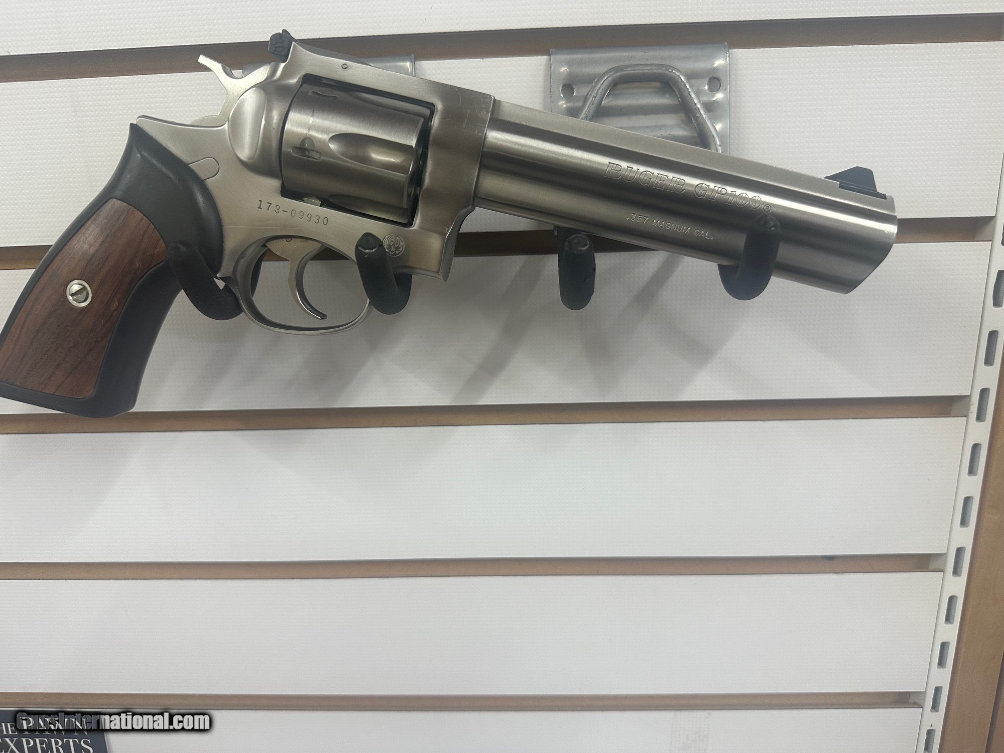 Description: Guns Listing ID: 1268481 The Ruger GP100 is a double-action revolver made by Sturm, Ruger & Co. in the United States. It‚‚s available in five-, six-, seven-, or ten-shot capacities, and in various barrel lengths and profiles. The GP100 is suitable for target shooting, law enforcement, home defense, and field carry. It has a medium/heavy stainless steel frame, a triple-locking cylinder, and a full-length rib along the top of the barrel. The GP100‚‚s grip frame design can accommodate a variety of custom grip SOLD Manufacturer: RUGER Model: GP100 Caliber Info: .357 MAG Condition: Used - Non-Certified Barrels: 6 BARREL Finish: STAINLESS |