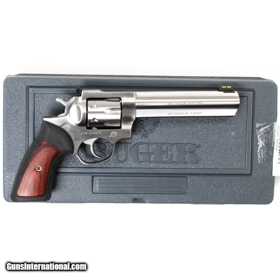 Description: Guns Listing ID: 535981 This Ruger GP100 features wood/rubber grip panels, a white notch adjustable rear sight, and a green fiber optic front sight. The original hard case and the owner‚‚s manual are included. Get the best bang for your buck when you get a Certified Used Firearm . When you see the Certified Used stamp on any of our firearms, you can be confident that you‚‚re getting exactly what you want – a gun only in very good to excellent condition and held to the highest quality standard. All Certified Used Guns come with a ‚‚no questions asked‚‚ return policy . PLUS, ALL CERTIFIED USED GUNS SHIP F SOLD Manufacturer: RUGER Model: GP100 Caliber Info: .357 MAG Condition: Used - Certified Barrels: 6.00 BARREL Action: REVOLVER Finish: stainless Weight: 2.8 |