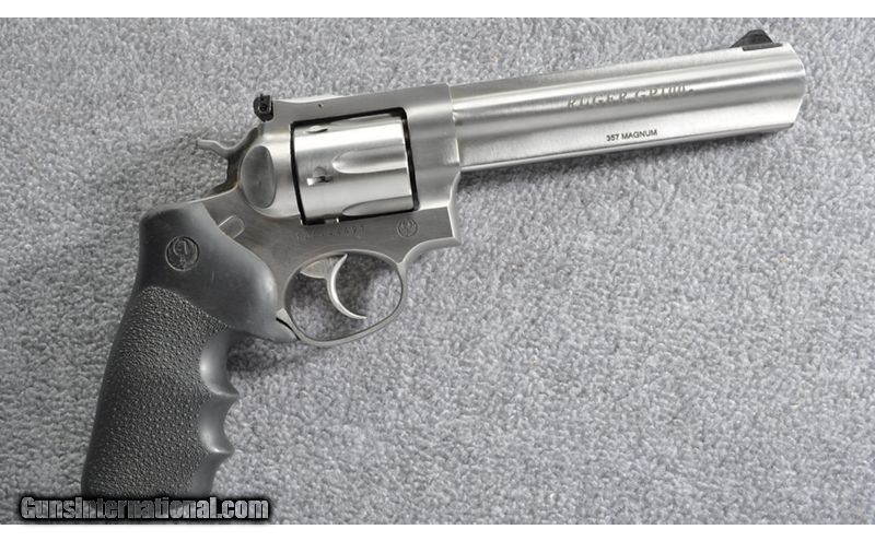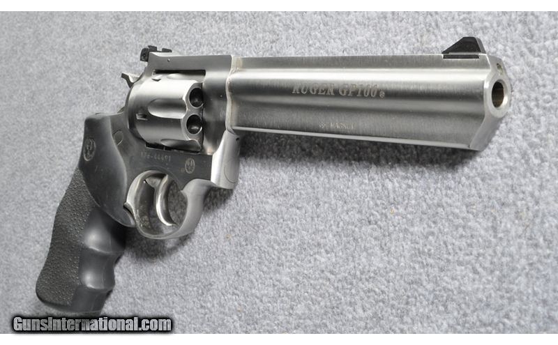 Description: Ruger GP100 double-action revolvers are among the most comfortable shooting revolvers. Triple-locking cylinder is locked into the frame at the front, rear and bottom for more positive alignment and dependable operation shot after shot. Grip frame design easily accommodates a wide variety of custom grips. Built to withstand heavy use. This revolver was shipped from the Ruger factory in 2012. .357 Mag/.38spl SOLD Chambers: .357 Magnum or .38 Special Metal Condition: Appears in near new condition Wood Condition: Rubber Hogue Monogrip in very good condition Bore Condition: Bright and sharp Barrels: 6" stainless full underlug Triggers: Single/Double Action Weight: 45 oz. Sights: "Interchangeable front blade, Adjustable leaf rear for windage and elevation Item Location: Grand Junction, CO |