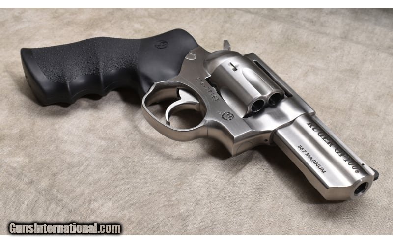 Description: Arguably one of the strongest revolvers ever built, the GP100 will last forever. This stainless steel pistol was manufacture in 2013 and features Hogue style rubber grips, 3-inch barrel, and brushed stainless steel finish. It has been fired a bit but is very well-maintained, showing little external wear. .357 Magnum SOLD Chambers: 6 rounds Metal Condition: Very good to excellent. There is some firing residue on the cylinder face.Shiny and bright with good rifling. Wood Condition: Excellent. Bore Condition: Shiny and bright with good rifling. Barrels: 3-inch Triggers: Factory double and single action trigger. Butt Pad: Stippled combat style finger groove black rubber. Weight: 35 oz Sights: Serrated ramp and top-strap groove. Item Location: Rogers |
