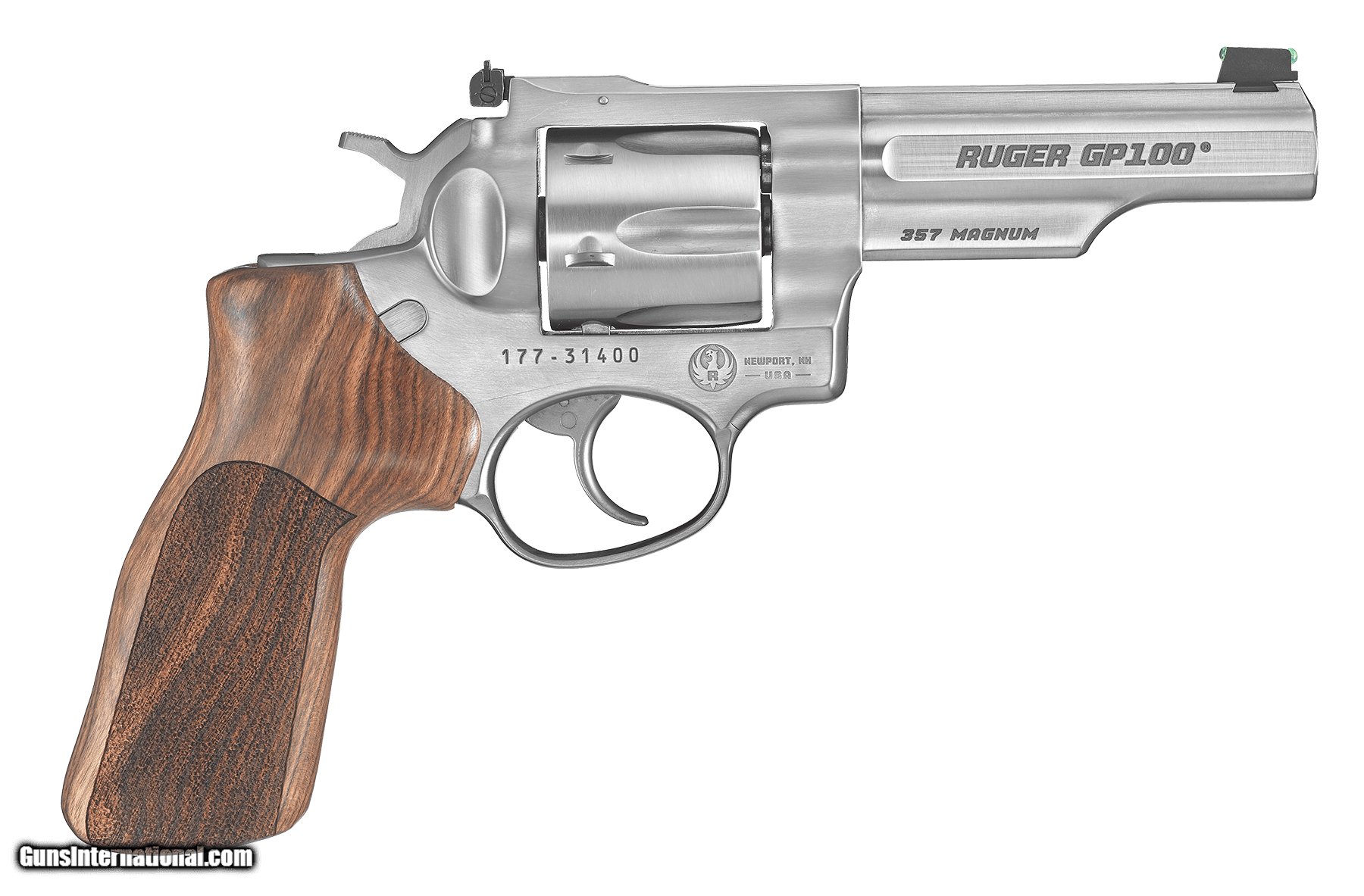 Description: Guns Listing ID: 1368829 This double action revolver has a 4.25in barrel with a six shot cylinder. It has two speed loaders, a leather holster and original box. It has black rubber Pachmayr grips and extra wood grips. SOLD Manufacturer: RUGER Model: GP100 MATCH CHAMPION Caliber Info: .357 MAG Condition: Used - Non-Certified Barrels: 4.2 BARREL |