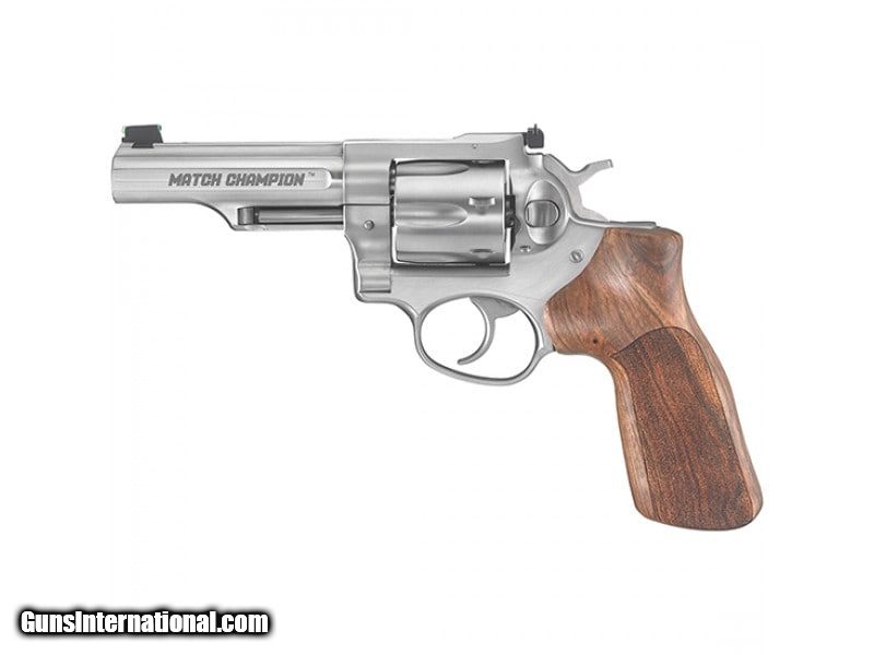 Description: Guns Listing ID: 1735 Chambered in 357 Mag, this Ruger GP100 Match Champion is a double-action revolver that delivers strength, simplicity, and ruggedness, while offering ergonomic enhancements and fast, accurate shots thanks to the factory-tuned action. Polished and optimized internals, a centering boss on the trigger, and centering shims on the hammer produce a smooth, double-action trigger pull and crisp, consistent let-off. The Hogue hardwood grips with stippled side panels permit an ideal grip for competition shooting, while the half-lug barrel delivers lively handling for quick transition between targets. A target crown offers competitive-level accuracy. The transfer bar mechanism provides an unparalleled measure of security against accidental discharge, and tool-free takedown makes for easy maintenance of the GP100 Match Champion. Fiber optic front and adjustable rear sights aid in target acquisition. SOLD Manufacturer: RUGER Model: GP100 MATCH CHAMPION Caliber Info: 357 MAGNUM Condition: new Barrels: 4.2 BARREL |