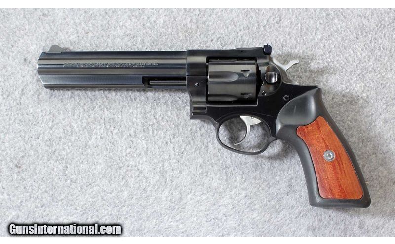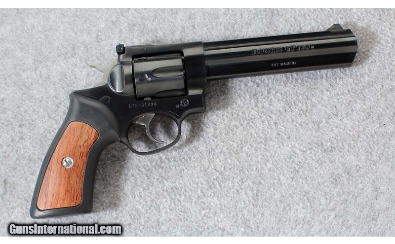 Description: Ruger® GP100® is a rugged and reliable double-action revolver that serves equally well for field carry in the outdoors, home defense, law enforcement, or target shooting. The GP100 revolver is built on a robust, medium/heavy steel frame. To withstand recoil from heavy 357 loads, a triple-locking cylinder is locked into the frame at the front, rear, and bottom so it stays aligned without getting sloppy over time. The angle of the GP100's peg-style grip frame, and the recoil cushioning grips greatly absorb recoil and allow the shooter to stay on target while firing the revolver in double-action mode. The Ruger GP100 Double-Action Revolver is solidly built sidearm that will serve a lifetime of hard use. Made in the USA. Made in USA 2007. .357 Magnum SOLD Metal Condition: Excellent with a turn line on the cylinder Wood Condition: Excellent Bore Condition: Excellent Barrels: 6 inch full lug barrel Triggers: Double action Weight: 44 oz. Sights: Adjustable white outlined rear sight with blade front Item Location: Lehi, UT |