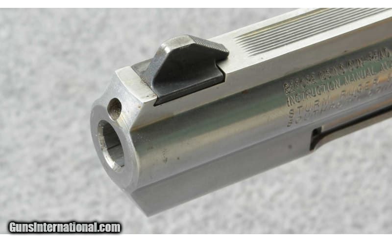 Description: Ruger GP100 is a rugged and reliable double-action revolver that serves equally well for field carry in the outdoors, home defense, law enforcement, or target shooting. The GP100 revolver is built on a robust, medium/heavy frame of stainless-steel. To withstand recoil from heavy 357 loads, a triple-locking cylinder is locked into the frame at the front, rear, and bottom so it stays aligned without getting sloppy over time. A full-length rib along the top of the barrel adds weight, and provides ample steel to dovetail the front sight, making the sight easily replaceable. The rear sight is fully adjustable for windage and elevation, and the factory ramp front sight is easily seen, while providing minimal interference when drawing the sidearm from a holster. A full-length ejector rod shroud puts extra weight out front to reduce muzzle flip, allowing for faster sight acquisition on follow up shots. The Ruger GP100 has a smooth double-action trigger pull, and a clean, crisp break in single-action. Stainless steel construction provides corrosion resistance, and low maintenance in the backcountry. The solid frame of the GP100 has no side plate, and the revolver disassembles into large subassemblies with no tools, aiding to ease of maintenance in the field. As with all Ruger Double-Action Revolvers, the GP100 features the patented Ruger transfer bar mechanism that provides an unparalleled measure of security against accidental discharge. The Ruger GP100 Double-Action Revolver is solidly built sidearm that will serve a lifetime of hard use. MADE IN USA 1999. .357 Magnum SOLD Metal Condition: Good with some scratches and scuff marks Bore Condition: Very good with signs of use Barrels: 4.2 inch full lug barrel Triggers: Double action Weight: 40 Oz. Sights: Adjustable rear sight with blade front Item Location: Lehi, UT |