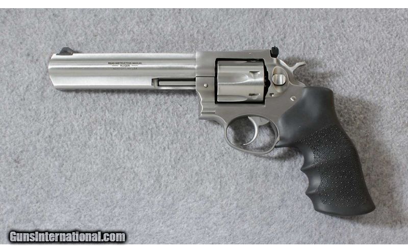 Description: Ruger® GP100® is a rugged and reliable double-action revolver that serves equally well for field carry in the outdoors, home defense, law enforcement, or target shooting. The GP100 revolver is built on a robust, medium/heavy frame of stainless steel. To withstand recoil from heavy 357 loads, a triple-locking cylinder is locked into the frame at the front, rear, and bottom so it stays aligned without getting sloppy over time. The angle of the GP100's peg-style grip frame, and the recoil cushioning Hogue® Monogrip®, greatly absorb recoil and allow the shooter to stay on target while firing the revolver in double-action mode. The Ruger GP100 Double-Action Revolver is solidly built sidearm that will serve a lifetime of hard use. Made in the USA.Made in USA 2016. .357 Magnum SOLD Metal Condition: Excellent with some scratches Bore Condition: Excellent Barrels: 6 inch full lug barrel Triggers: Double action Weight: 45 oz. Sights: Adjustable white outlined rear sight with blade front Item Location: Lehi, UT |