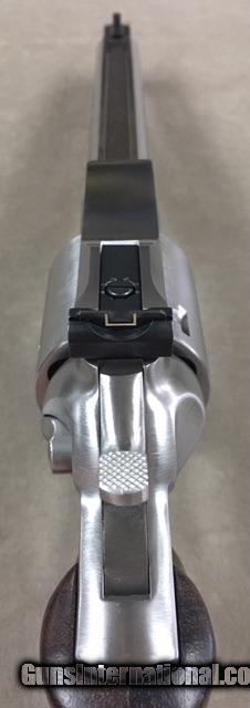 Description: This is a special edition GP100 as made for Talo to be sold only through their distribution network, and it has a 6 inch barrel with a non-fluted cylinder, custom Hogue American Walnut grips, etc. I have also in-cluded a pair of factor Ruger Hogue Rubber Grips which is a much better choice for shooting. This revolver may have been fired but you cannot tell it if it has. Revolver appears to be new in all respects with paperwork, original box with label, etc. This closet queen just came in on a trade and won't last very long. SOLD |