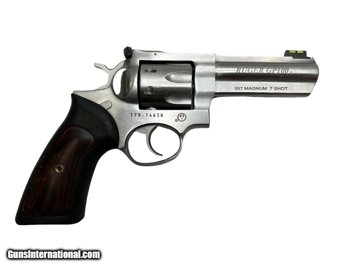 Description: Guns Listing ID: 466331 The Ruger GP100 is a solid and dependable American-made revolver. This model is chambered in .357 magnum with a 4\" barrel and 7 shot cylinder. It will make a fantastic self-defense handgun as well as target shooter. Itme# I01018759 SOLD Manufacturer: RUGER Model: GP100 Caliber Info: .357 MAG Condition: Used - Non-Certified Barrels: 4.2" barrel |
