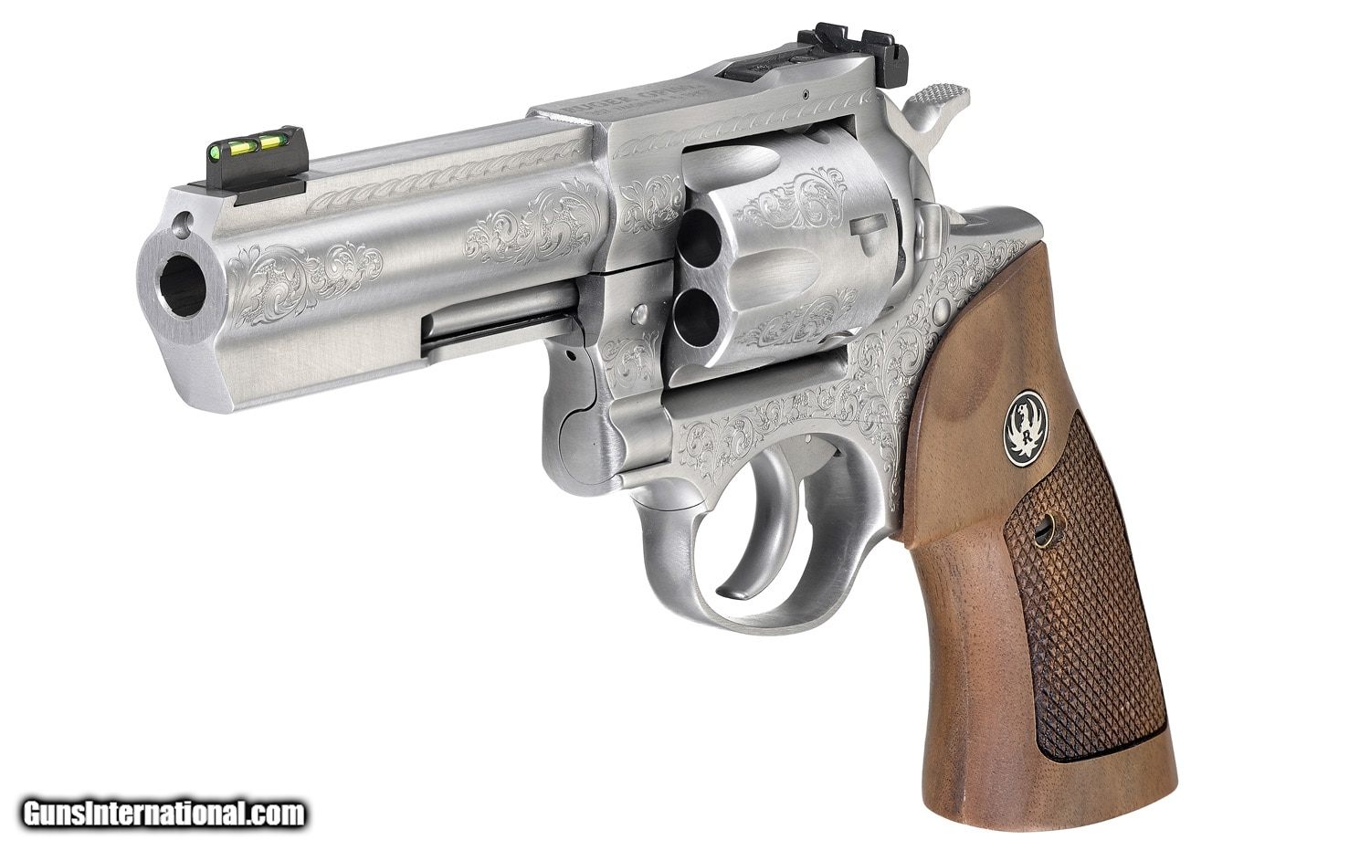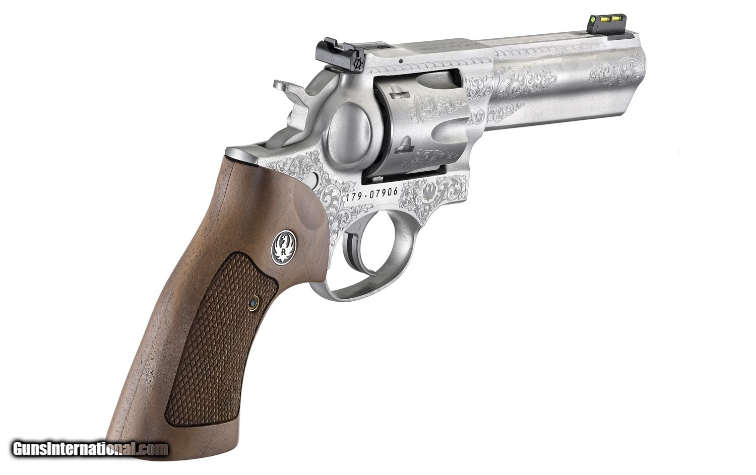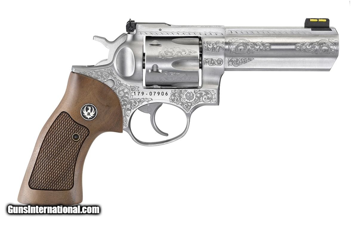 Description: Guns Listing ID: 71200 • Triple-locking cylinder is locked into the frame at the front, rear and bottom for more positive alignment and dependable operation shot after shot. • Grip frame design easily accommodates a wide variety of custom grips. • Takedown of integrated subassemblies requires no special tools and allows for easy maintenance and assembly. • Transfer bar mechanism provides an unparalleled measure of security against accidental discharge. SOLD Manufacturer: RUGER Model: GP100 Caliber Info: 357 MAG Condition: new Barrels: 4.2 BARREL |