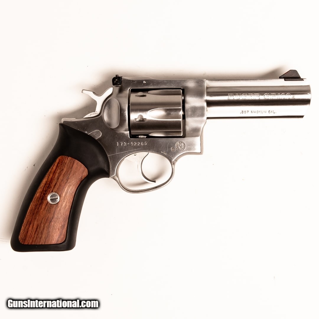 Description: Guns Listing ID: 544653 The Ruger GP100 is an excellent revolver, well-suited for self-defense or target shooting. Ruger firearms are proudly made in America and known for their rugged reliability. This GP100 sports wood and rubber grips, an orange front sight, and a white rear sight. The original case and manual are included. SOLD Manufacturer: RUGER Model: GP100 Caliber Info: .357 MAG Condition: Used - Certified Barrels: 4.1 BARREL Finish: STAINLESS |