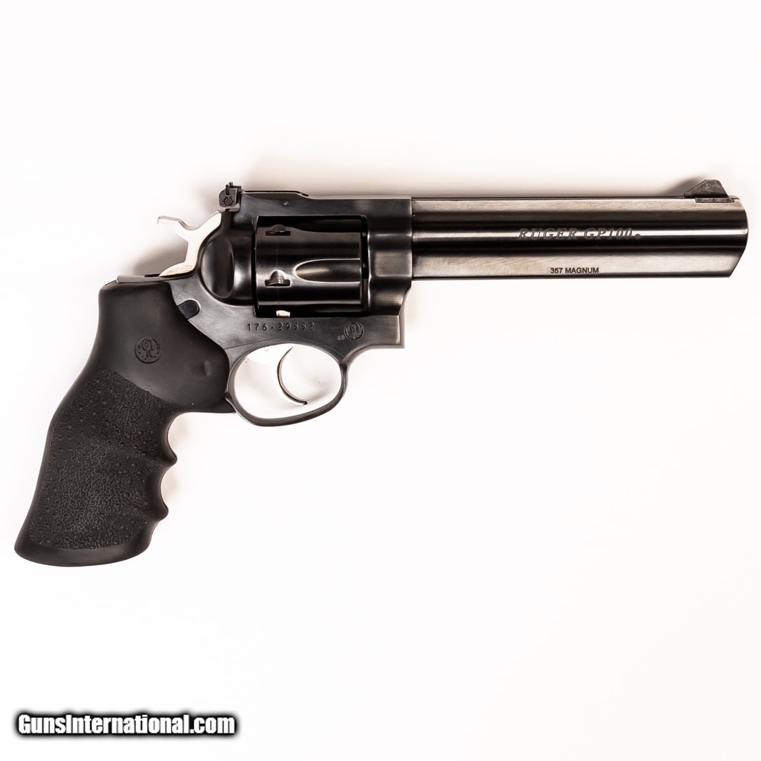 Description: Guns Listing ID: 521946 The Ruger GP100 is an excellent revolver that is reliable but doesn‚‚t break the bank. This one is chambered in 357 Magnum with a 6\" barrel and will make an excellent self-defense sidearm. Ruger‚‚s are proudly made in America and are known for their rugged reliability. Original case and manual include SOLD Manufacturer: RUGER Model: GP100 Caliber Info: .357 MAG Condition: Used - Certified Barrels: 6 BARREL Finish: BLACK |