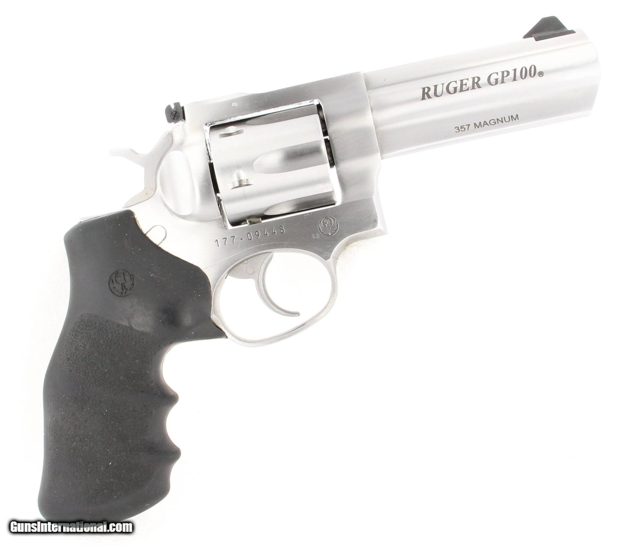 Description: Guns Listing ID: 700741 COMES WITH NO CASE/POUCH APEARS TO NEED NEW REAR SIGHT Strength, Simplicity and Ruggedness. Ruger® GP100® double-action revolvers are among the most comfortable shooting revolvers. Their rugged, medium-sized frame and grip system permit repeated firings with minimal shooter fatigue. Easy on the hand and budget, all GP100 revolvers boast solid steel sidewalls (no side-plates), and frame widths that are increased with extra steel in critical areas that support the barrel, making them rugged, reliable, and dependable. SOLD Manufacturer: RUGER Model: GP100 Caliber Info: .357 MAG Condition: Used - Non-Certified Barrels: 4.2" barrel |