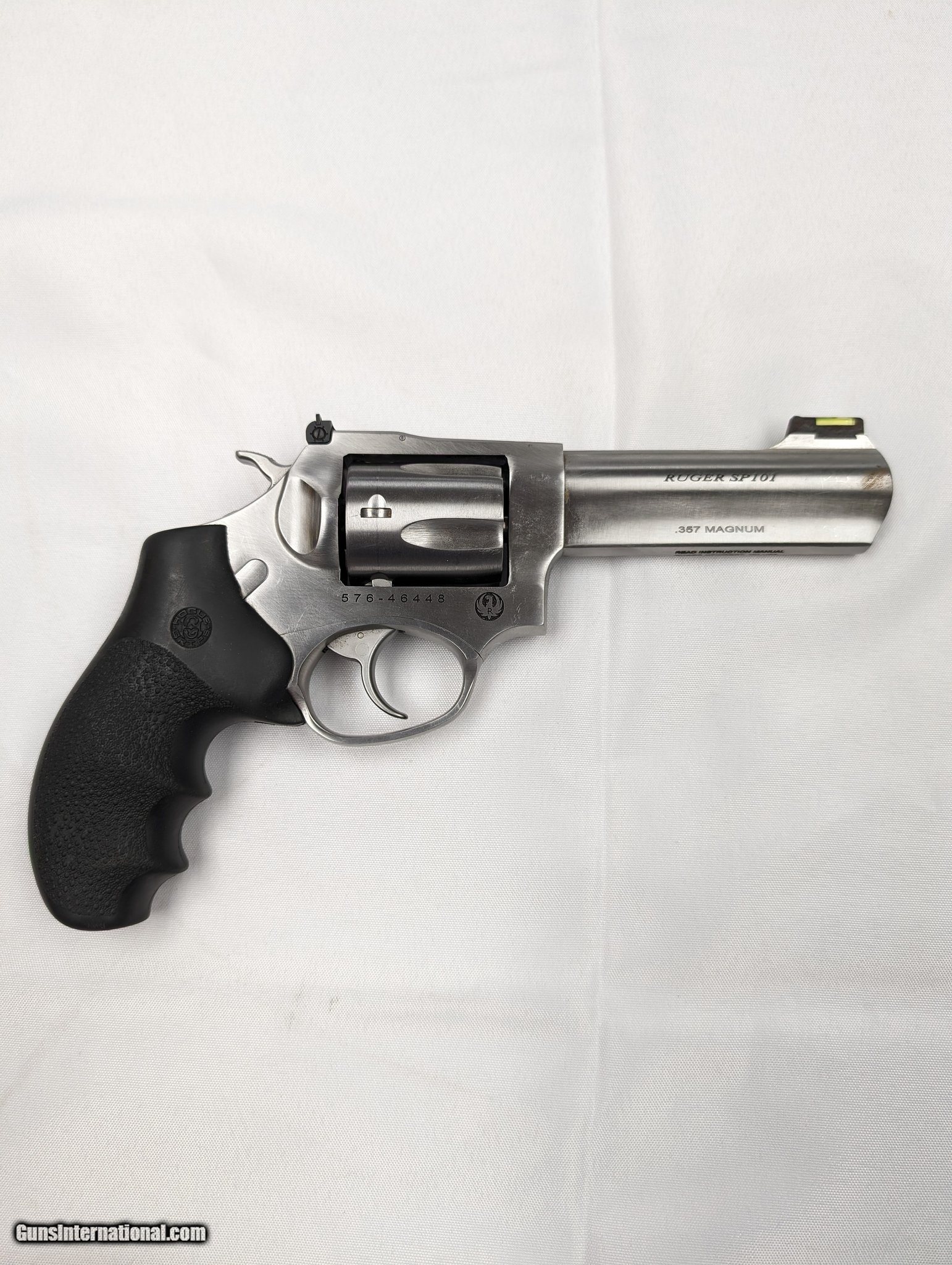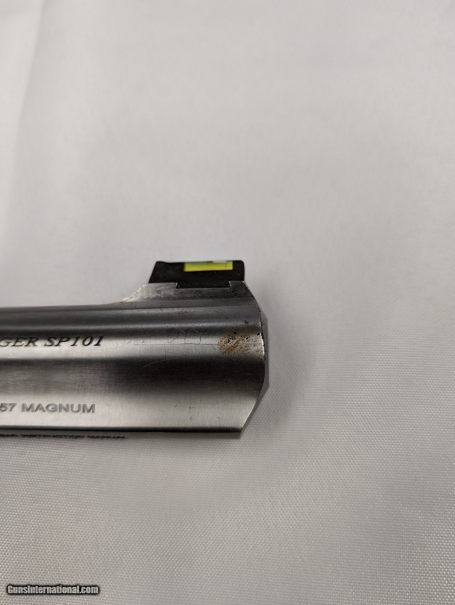 Description: Guns Listing ID: 1273600 THIS PISTOL IS IN VERY GOOD CONDITION. IT HAS SOME MINOR SURFACE RUST ON THE END OF THE BARREL AS PICTURED SOLD Manufacturer: RUGER Model: SP101 Caliber Info: .357 MAG Condition: Used - Non-Certified Barrels: 4.2 BARREL Finish: STAINLESS & BLACK |
