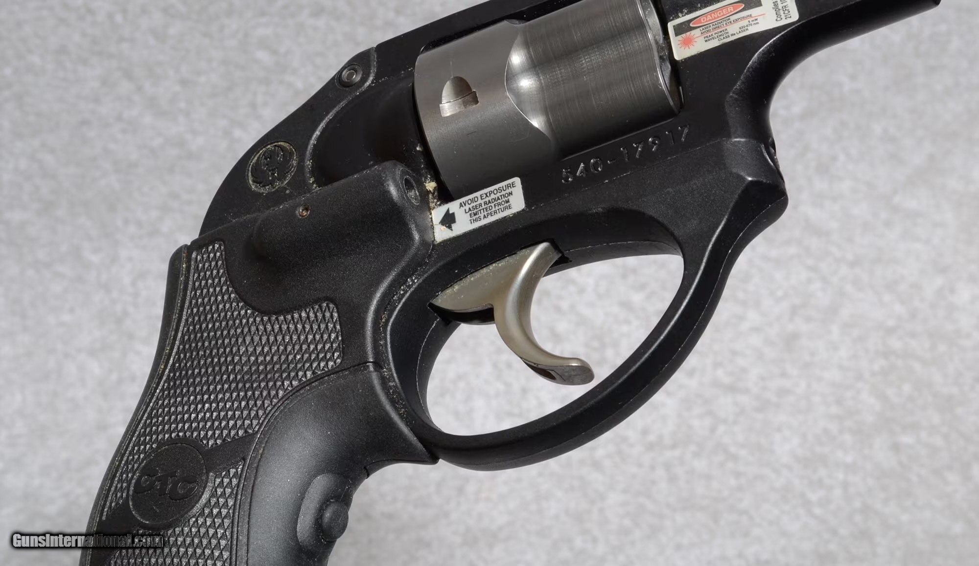 Description: The Ruger LCR is a compact revolver built by Sturm, Ruger & Co. and announced in January 2009. LCR stands for "Lightweight Compact Revolver". It incorporates several novel features such as a polymer grip and trigger housing, monolithic receiver, and constant force trigger. The gun is equipped with Crimson Trace Laser Grips with a grip actuation button. .38 Special + P SOLD Chambers: Revolver Metal Condition: Excellent Wood Condition: Rubber Crimson Trace Grips Barrels: 1.875" Barrel Triggers: Ruger Factory Trigger Weight: 14 Oz Sights: Fixed Ramp Front Sight and Notch Rear Sight Item Location: Tulalip, WA |