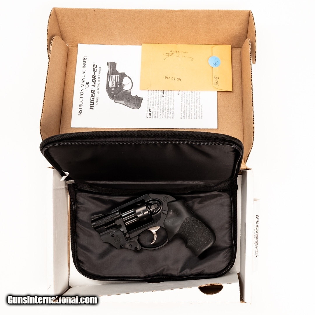 Description: Guns Listing ID: 865207 Short for \"Lightweight Compact Revolver,\" the Ruger LCR lives up to the name. If you‚‚re looking for a rugged American-made revolver for close-range personal protection, this LCR is the perfect fit. This LCR features a Lasermax red laser and includes the original box, soft case, and owner‚‚s manual. Get the best bang for your buck when you get a Certified Used Firearm . When you see the Certified Used stamp on any of our firearms, you can be confident that you’re getting exactly what you want – a gun only in very good to excellent condition and held to the highest quality standard. All Certified Used Guns come with a ‘no questions asked’ return policy . PLUS, ALL CERTIFIED USED GUNS SHIP FRE SOLD Manufacturer: RUGER Model: LCR Caliber Info: .22 LR Condition: Used - Certified Barrels: 1.8 BARREL Finish: BLACK |