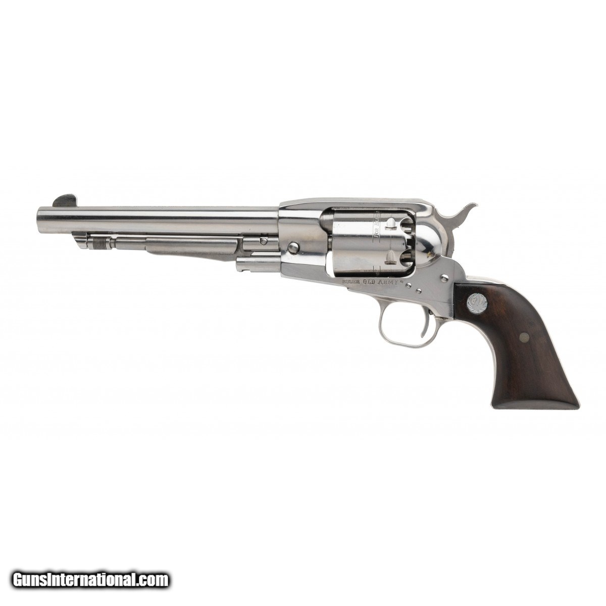 Description: " Modern production stainless steel cap and ball revolver with a 7.5"" barrel. Bore is excellent. Vaquero model with fixed sight. Overall excellent condition. SOLD |