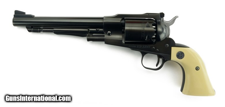 Ruger Old Army .45 Caliber Black Powder Revolver. Early model in excellent condition with box. Has imitation ivory grips as well as the original wood grips.