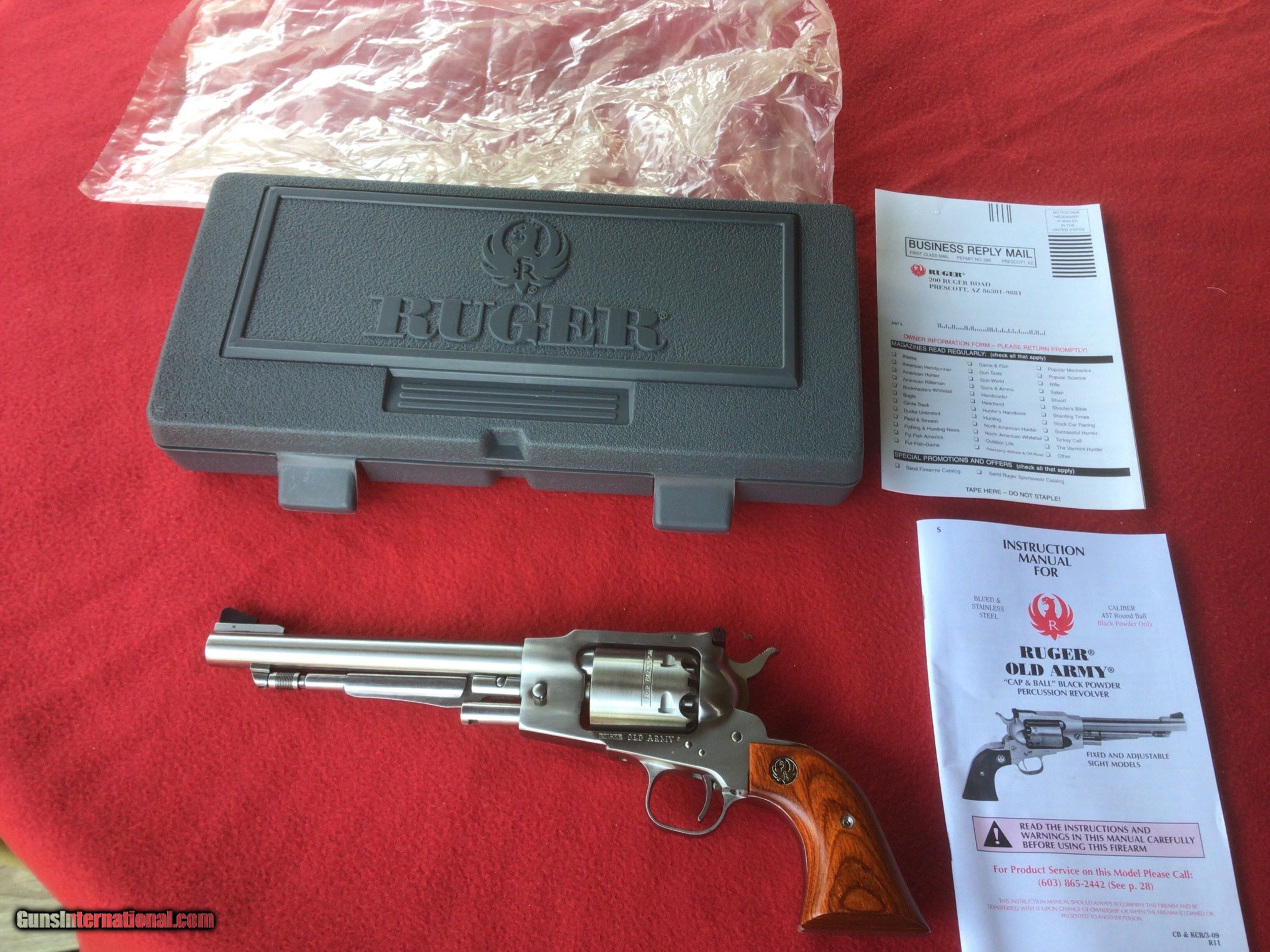 RUGER OLD ARMY 44 CAL, 7 1/2” BARREL, STAINLESS STEEL, MUZZLE LOADER, NEW UNFIRED IN THE BOX