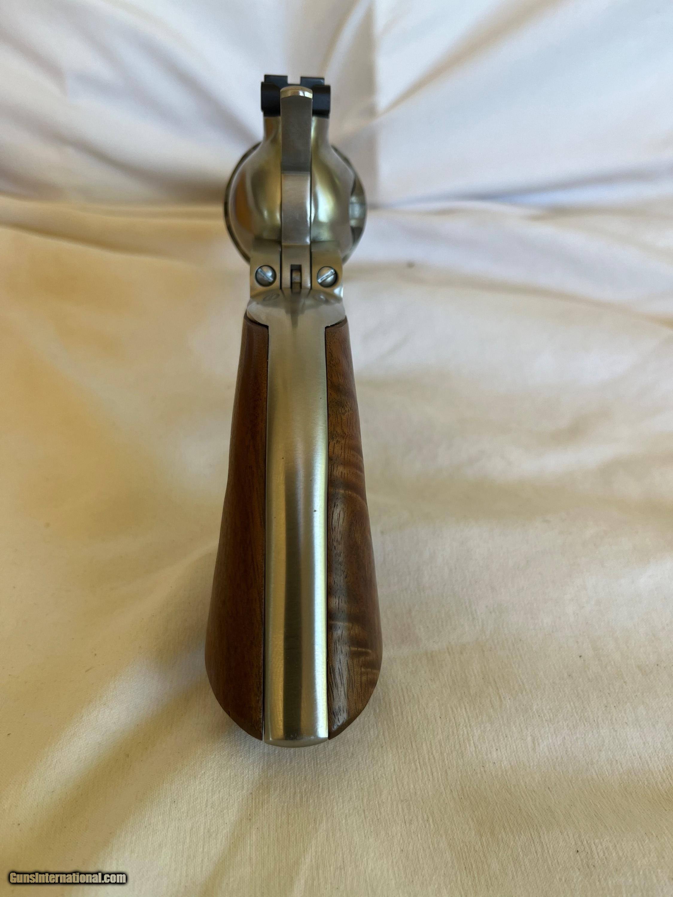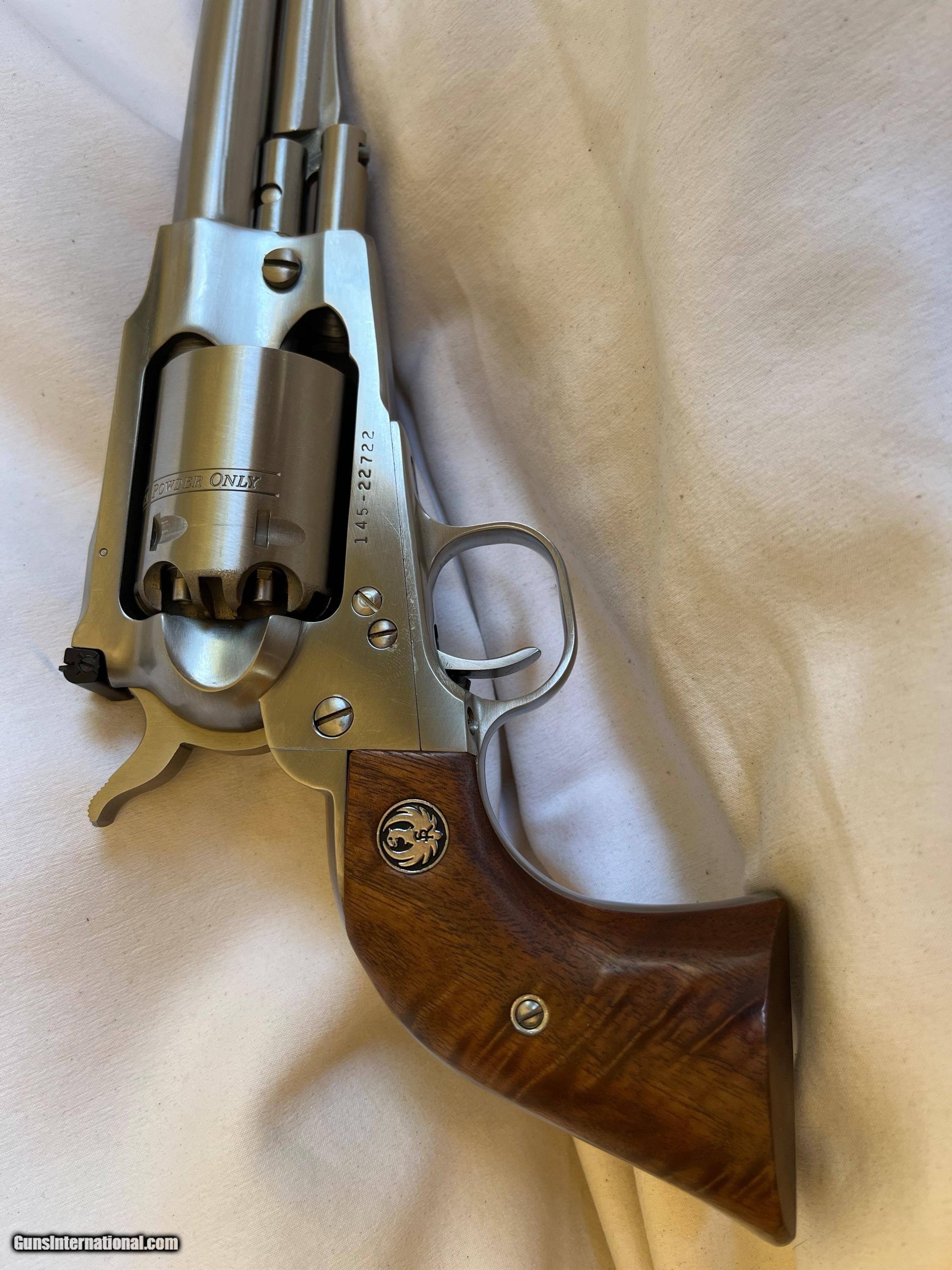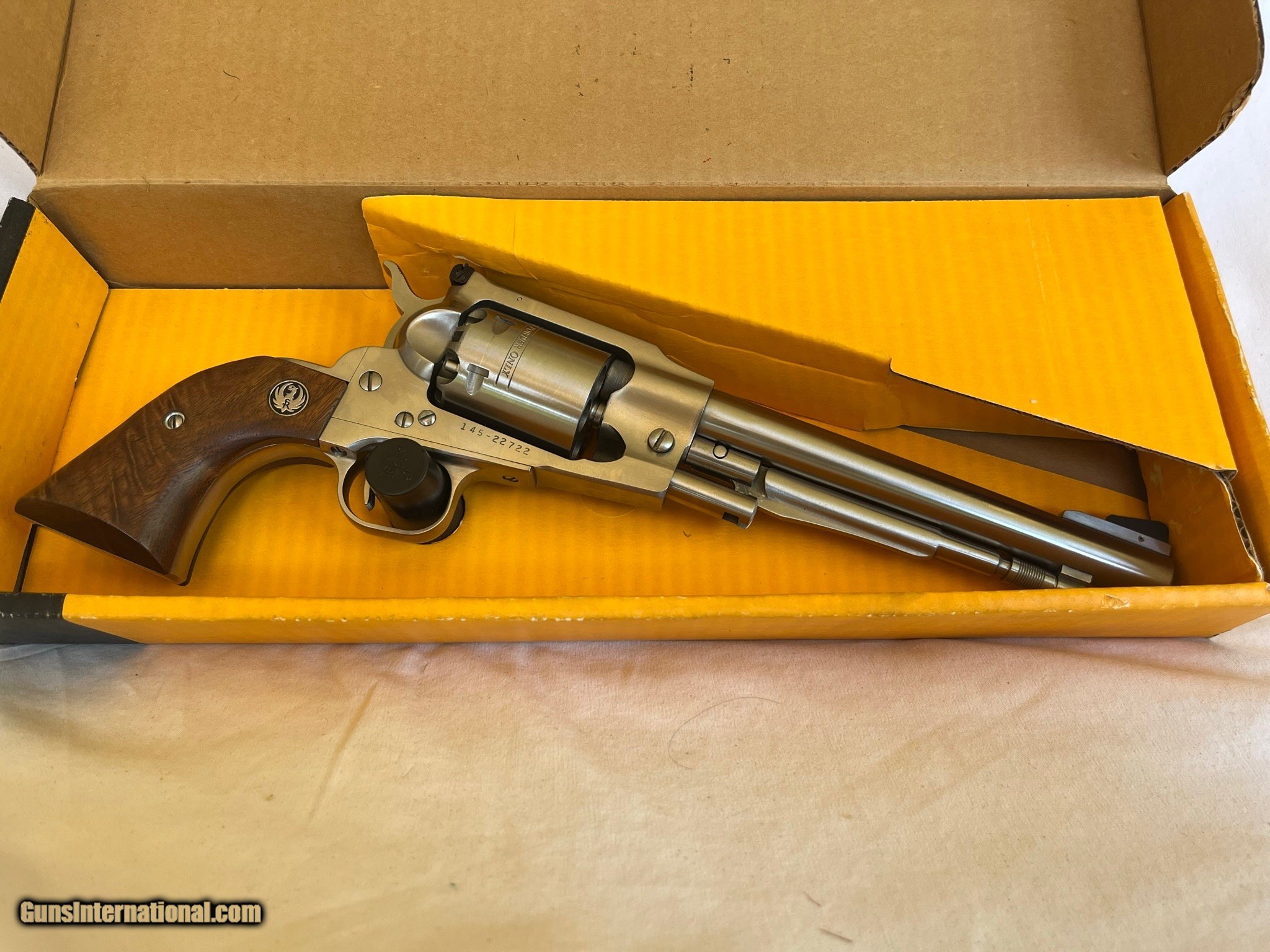Description: Ruger Stainless Steel .44 Old Army cap & ball revolver. In original box with unused nipple wrench & instruction manual. 7 1/2" barrel, excellent condition, wood grips are as new. If this piece has been used, it was very little! I understand these revolvers were put together very well. And that is all I know about it! Price including shipping to the lower 48 states: $995. SOLD Serial Number: 145-22722 |