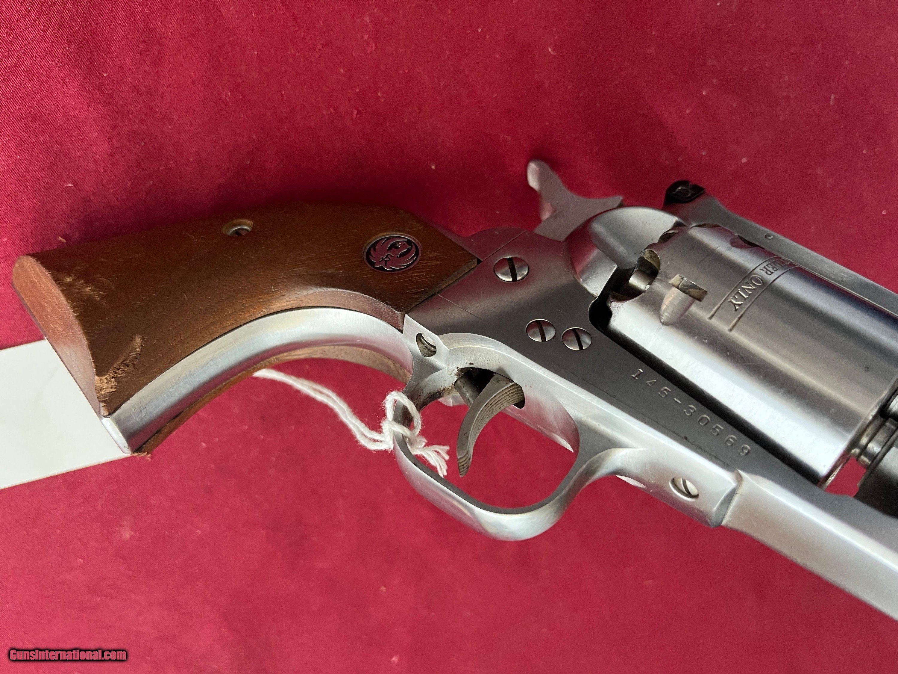 Description: RUGER OLD ARMY REVOLVER STAINESS FINISH. SER# 145-30569, CALIBER 45 PERCUSSION . 7 1/2" BARREL WITH ADUSTABLE REAR SIGHT . SER# 145-30569. GUNS IN VERY GOOD CONDITION , NICE FINISH . GRIPS HAVE SOME DINGS AND CHIPS. BLACK POWDER REVOLVER NO FFL LIC REQUIRED. RUGER OLD ARMY REVOLVER STAINESS FINISH 7 1/2" BARREL EASTERN BRANCH FIREARMS ADD 40.00 SHIPPING – NEXT DAY AIR SHIPPING ADD 50.00 SHIPPING – LONG GUNS GROUND OPTIONAL INSURANCE IS AVAILABLE AT 1.25 PER 100.00 Questions e-mail or call Glen at Eastern Branch Firearms 207-215-5021 TERMS – PLEASE READ BEFORE I DO NOT HAVE A LAYAWAY OPTION ( WE ACCEPT CREDIT CARDS ) -- I GET ALOT OF REQUEST FOR TRADES, I WOULD PERFER NOT TO DO TRADES ON MY INTERNET LISTINGS PAYMENT OPTIONS- We accept money orders, cashier’s checks , bank checks. sorry no personal checks. We accept all major credit cards please add 3% to the ’s cash discount price.(Shipping within the state of Florida - Florida Residents must pay sales tax) .Handguns and long guns do need to be shipped separate. PLEASE do not send payment via FED EX . USPS & UPS are fine. Thank you. We include a signed copy of our FFL with each firearm shipped. SAFTY NOTICE- Buyer is solely responsible for determining that a used gun is safe to shoot. The firearms offered have not been test fired but have been given a visual inspection only for purposes. It is a requirement that every used firearm is inspected by a qualified gunsmith before firing. By , the buyer agrees to hold seller harmless against damages, injury, or death caused by defective merchandise. RETURN POLICY- All firearms come with a 3-day non firing , non messing with ( turning srews ,taking apart,removing parts, scoping. firing, cleaning or messing with in anyway) inspection/return privilege.Inspection is based on a visual review of the gun to confirm the gun is in the condition stated. In the case of a return, buyer pays all shipping charges & if paid for with a credit card buyer absorbs the 3% credit card charges . So please ask questions BEFORE you bid. Thanks for Looking and Good Luck!! U.S. sales only, no exports…this includes antiques. I will ship to third party for exporting SOLD Antique: Yes |