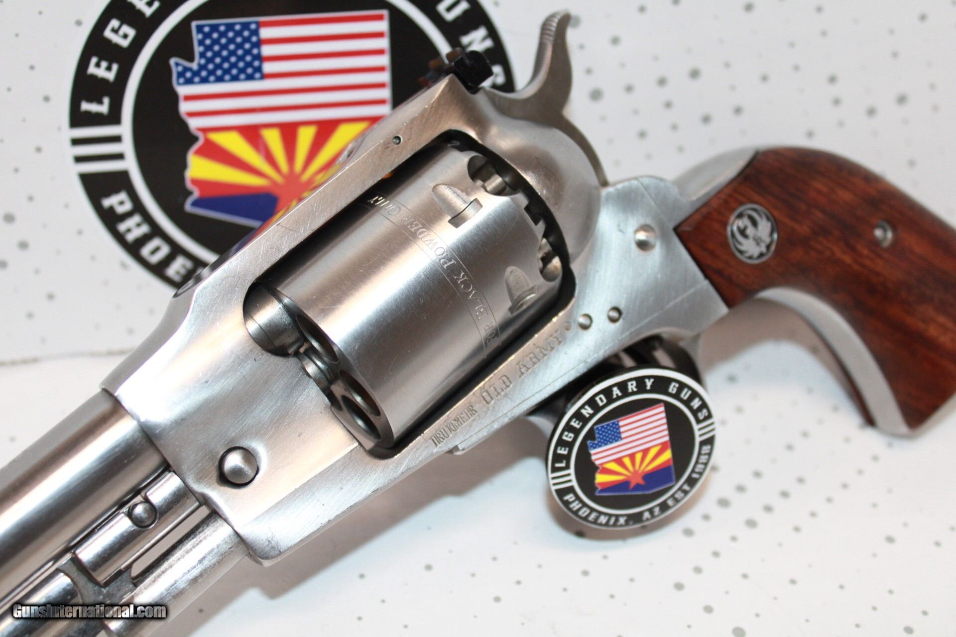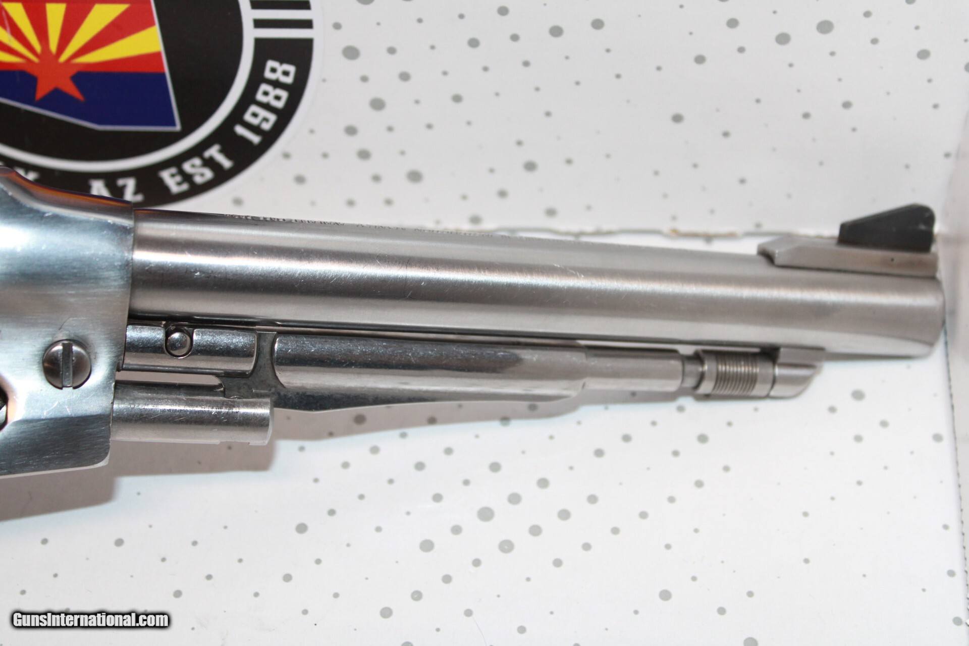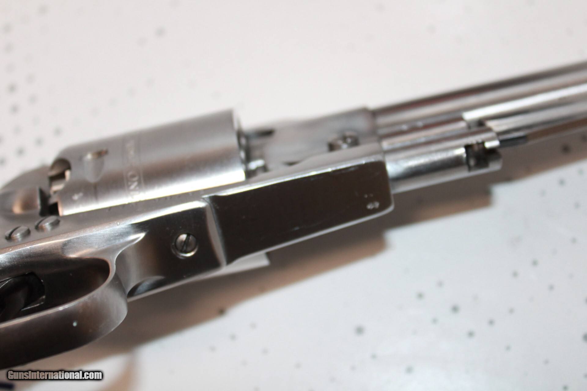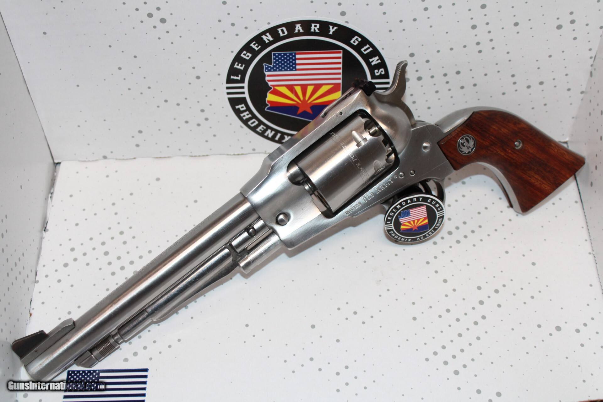 Ruger Old Army in 45Caliber with a 7.5" barrel, wood grips. Stainless finish, gun has a few light scratches,mechanically in very good condition, no box. Some states have a different definition of what the Old Army is and we will treat it as such. So if you live a State that is "not gun friendly" expect it to have to ship to a FFL. If you live in a "gun friendly state" than we will have no problem with this Black Powder pistol.